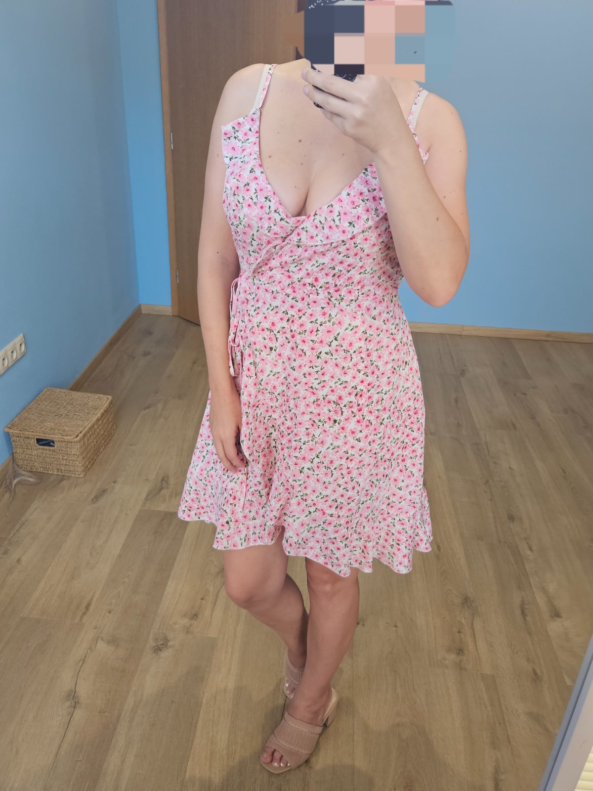 SkladomKvetinové ľahké letné šaty, veľkosť S aj tak sadnú, dĺžka cca 85 cm. Nastaviteľná dľžka ramienok, šírka v páse sa dá vďaka šnúrke prispôsobiť tiež, nepresvitajú.