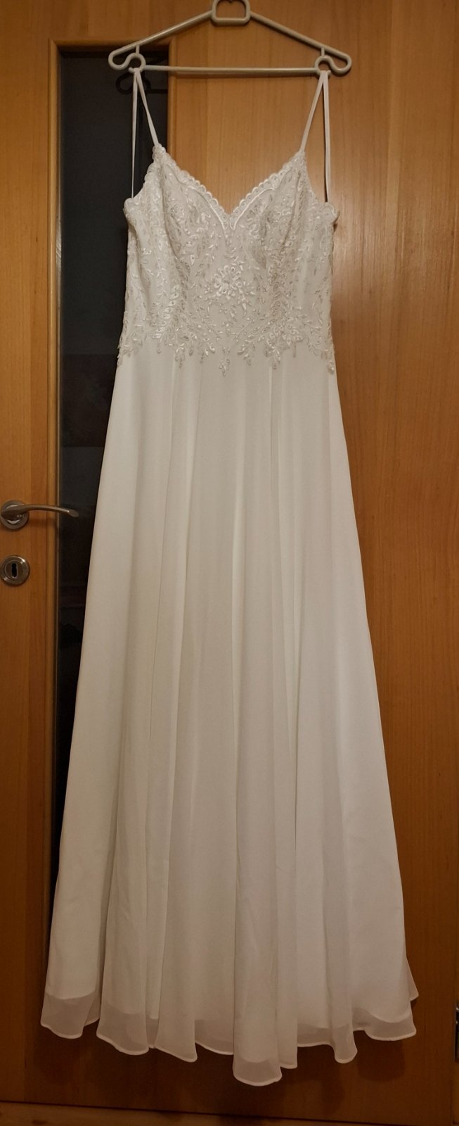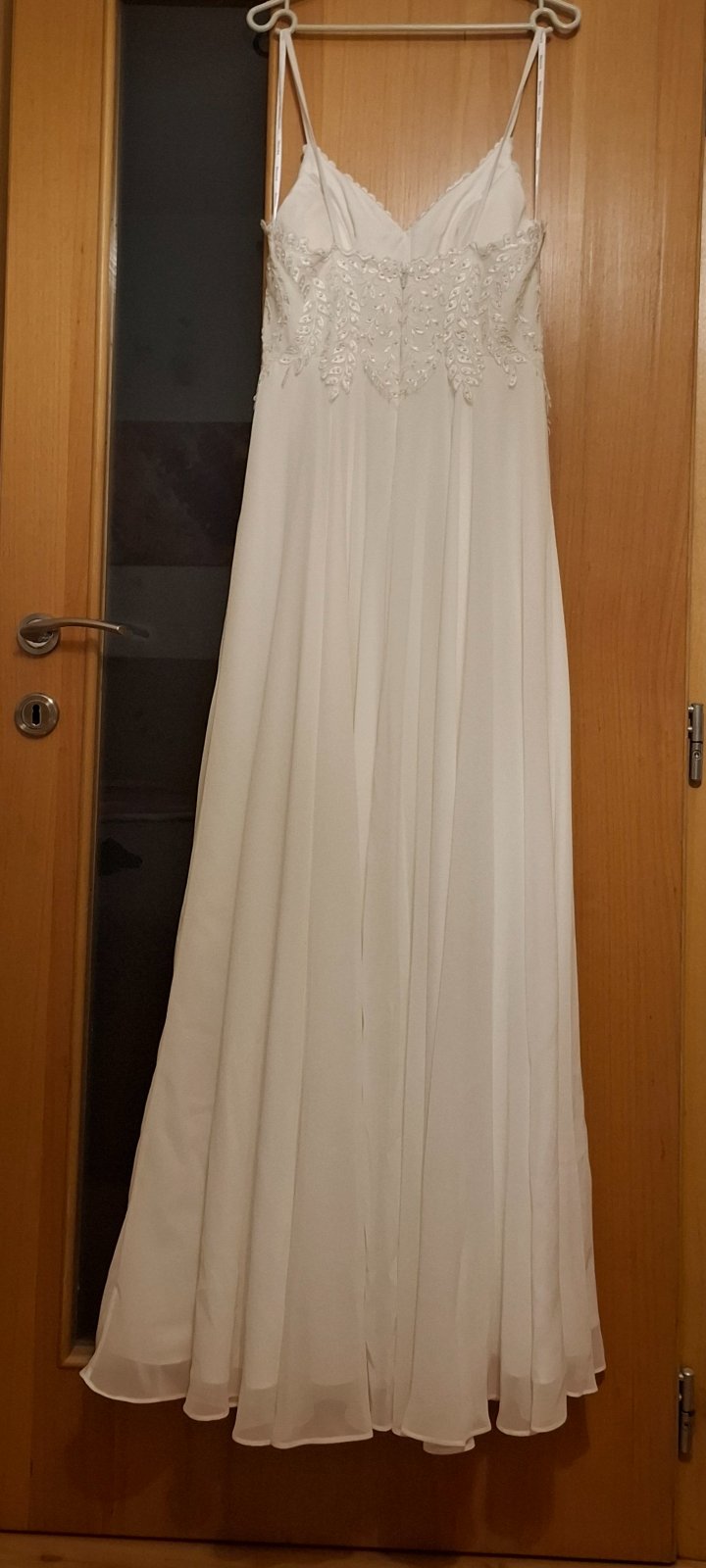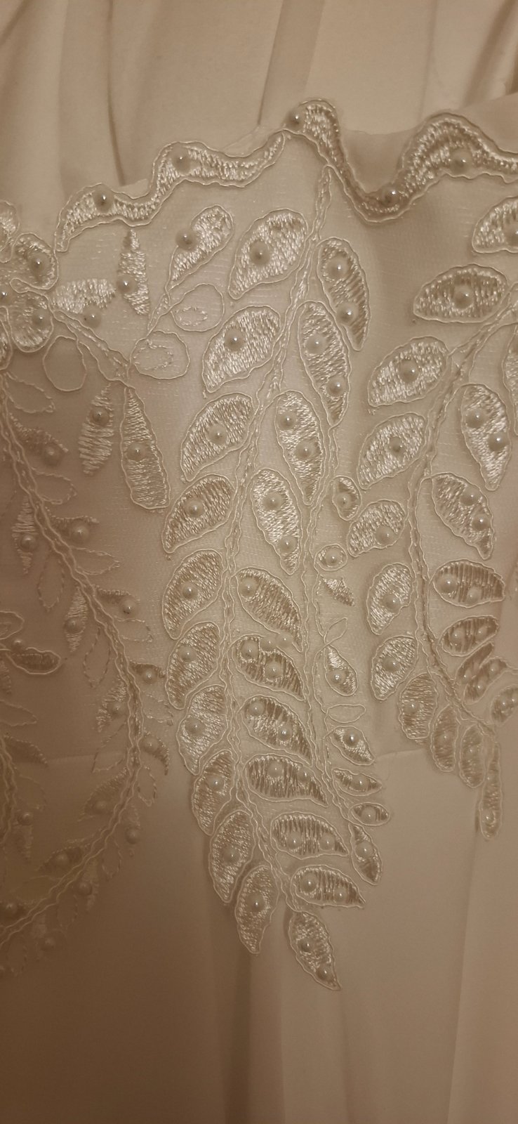 Šaty sú biele odtieň ivory, sedia na výšku 172 a viac, podľa žiadanej dĺžky.