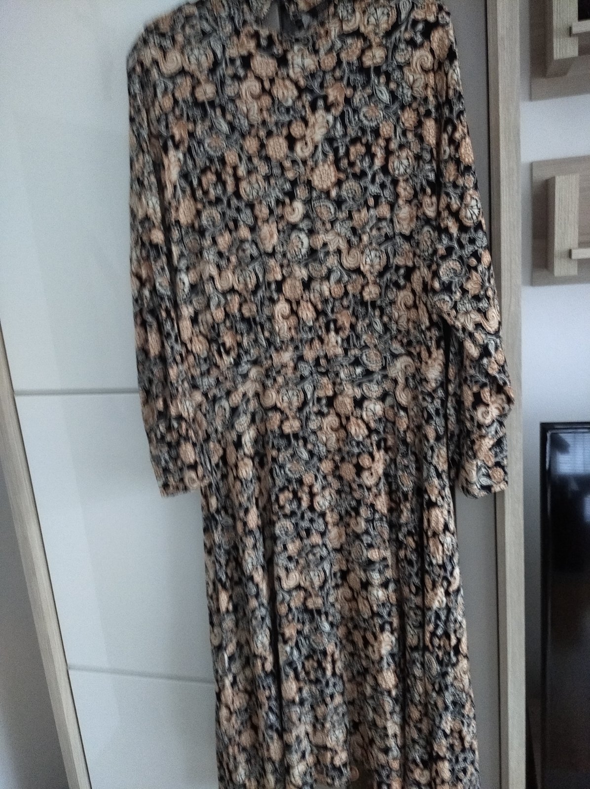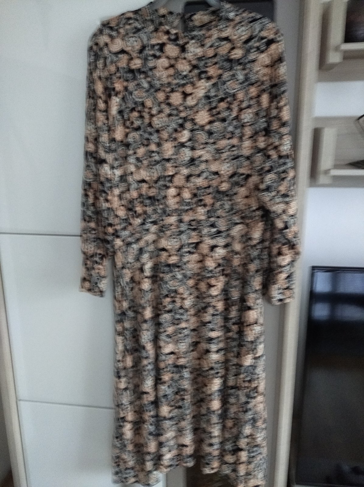 raz oblecené a oprate, nesadla mi velkost, polyester dlžka 137cm, sirka 55-65cm, rukavod krku 73cm