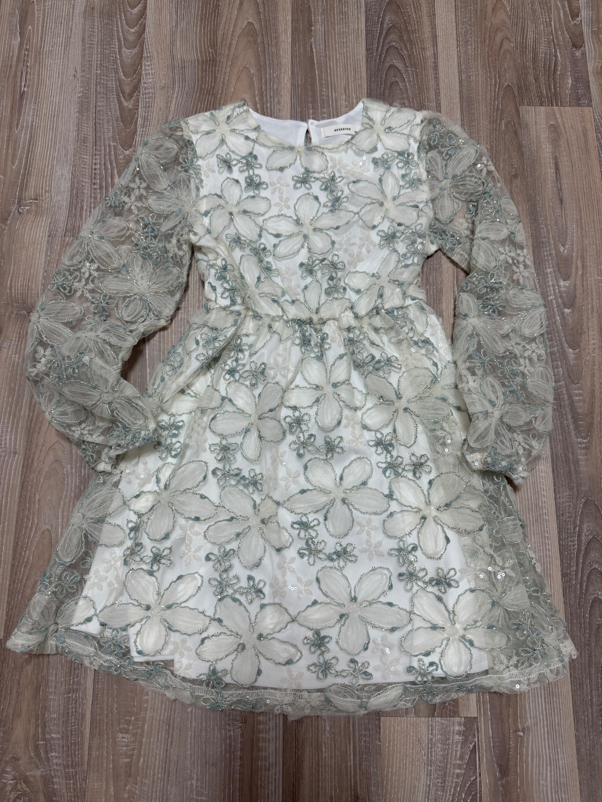 Ľahké, padave šaty na prijimanie s dlhým čipkovaným rukavom Veľkosť 12-13y dĺžka 120 cm pas 37 cm pod pazuskami 40 cm rukáv od krku ma 59 cm Veľkosť 8-9y Nové Možnosť dokúpiť spodnicku, kruh 15€ ...