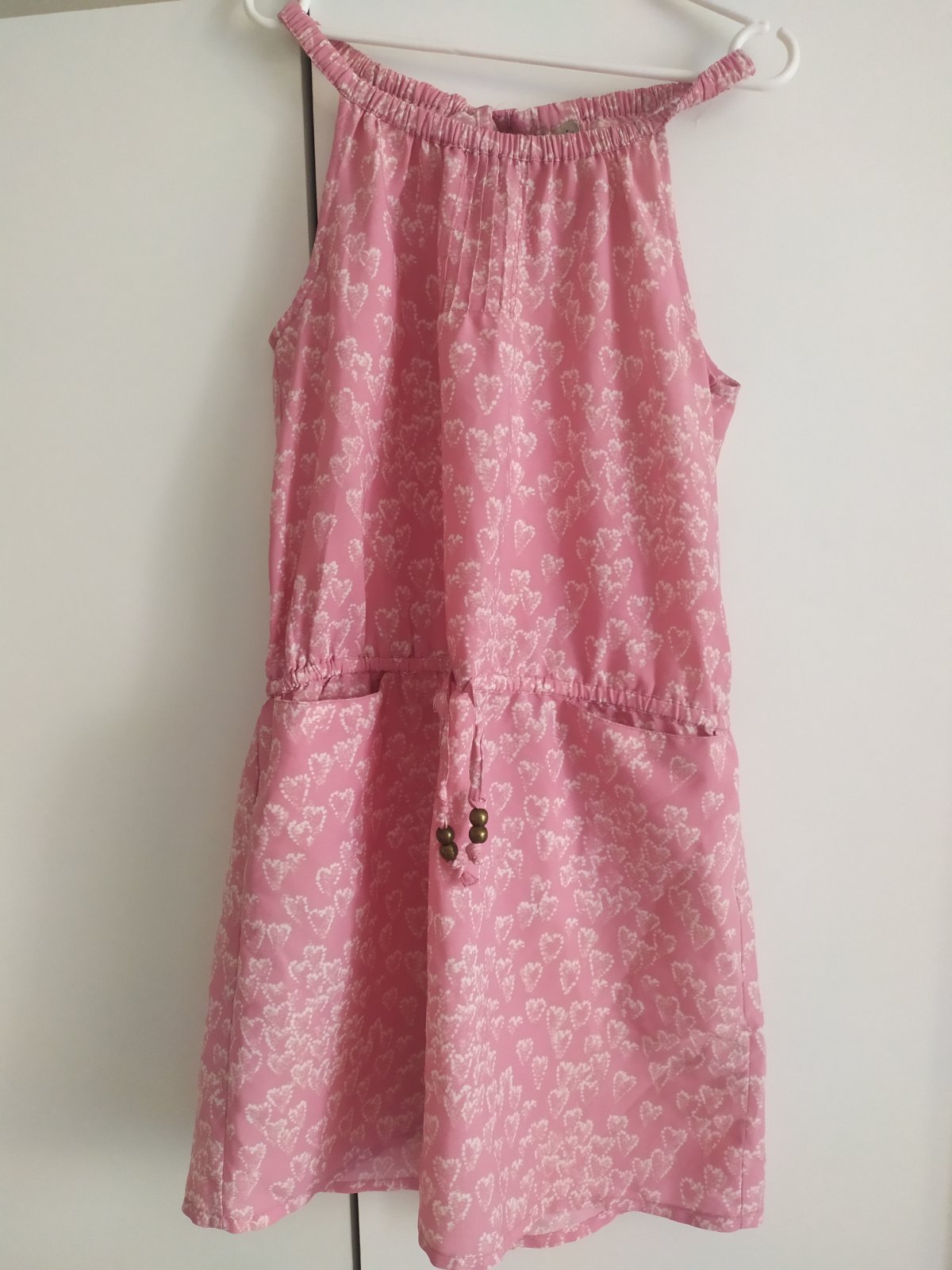 Saty v top stave, par krat oblecene, neskor sa daju nosit ako tunika. Pisana velkost je 110, ale sedia skor na 116/122. Velk. 128 nositelna ako tunika. Rozmery: dlzka 56cm, sirka 32cm Hmotnost: 110g