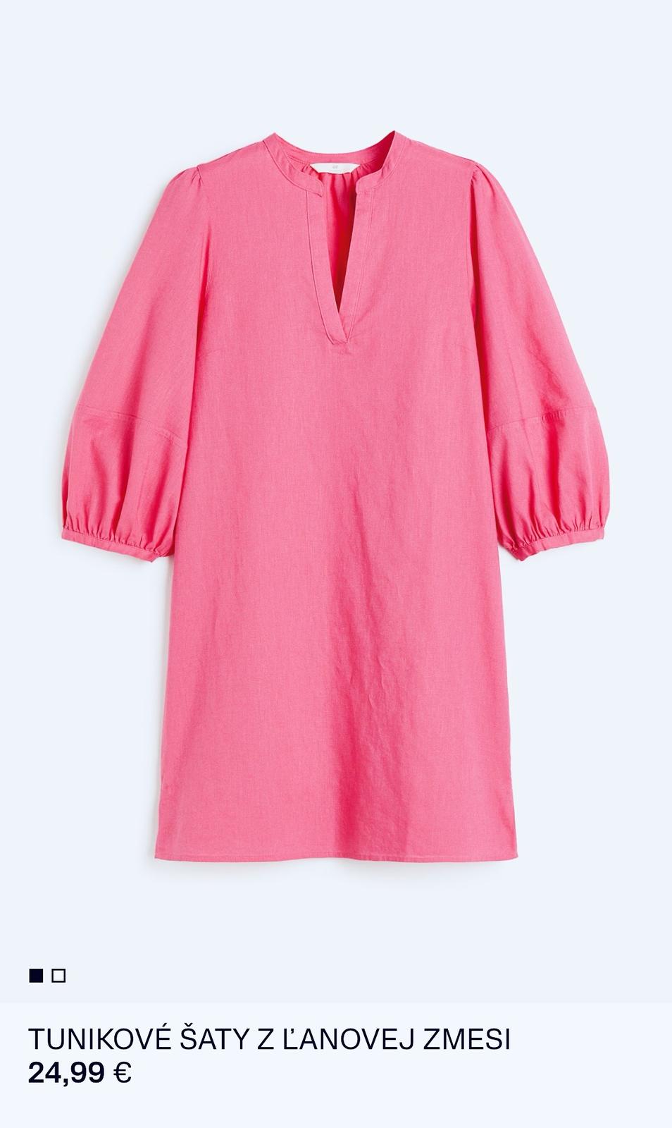 Obľúbený H&M produkt; tunikové šaty, málo nosené; Zmes bavlny a ľanu - viď štítok na detail foto; pekná farba, kupované nové, oblečené na jednej dovolenke top stav; veľkosť XS; pod pazuchami šírka 45cm; dĺžka 86 cm