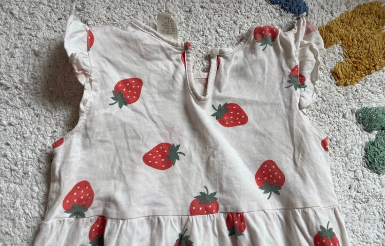- nosené biele jahodové šaty