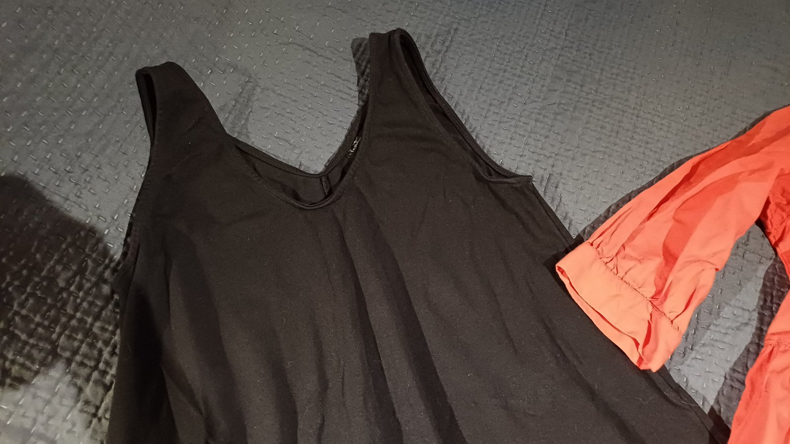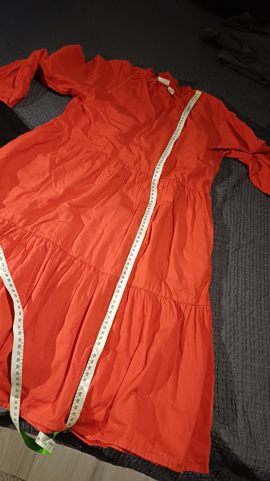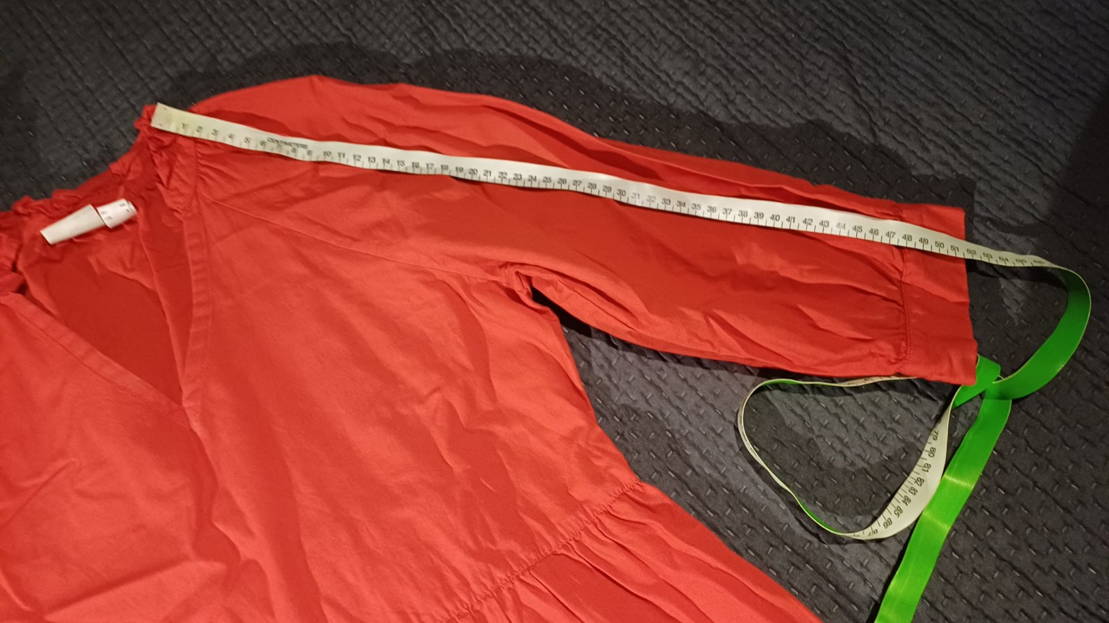Pomarančové s trojštvrťovými rukávmi - veľkosť 36, Dĺžka je 90 cm a rukáv od krku je 52 cm.