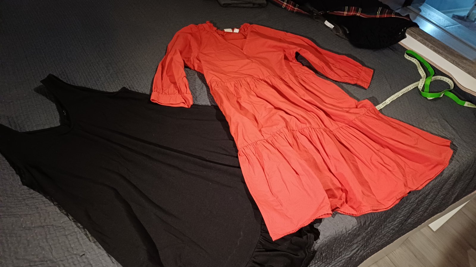 Čierne na ramienka, veľkosť 38, dĺžka je 81 cm, voľný letný strih.