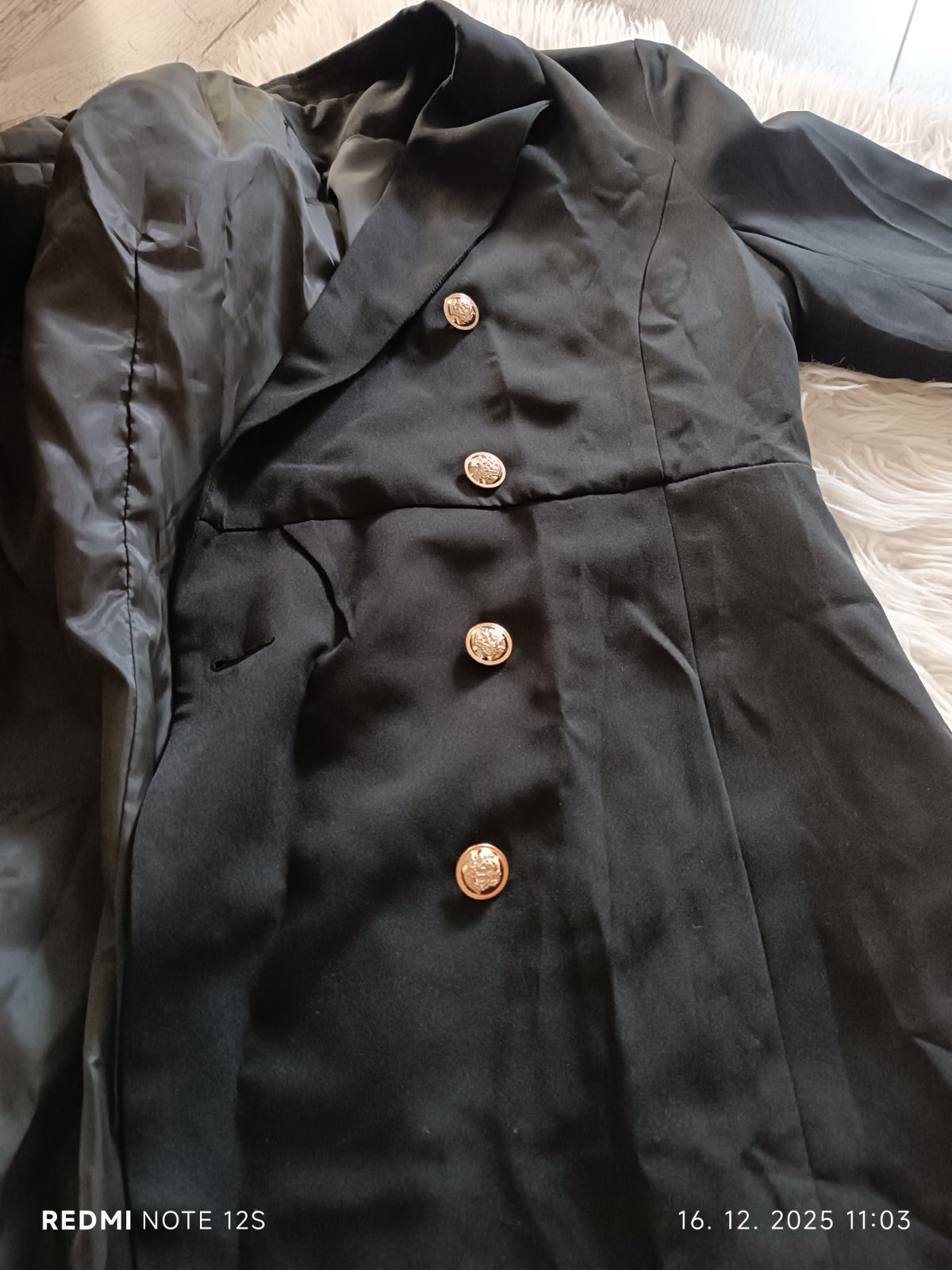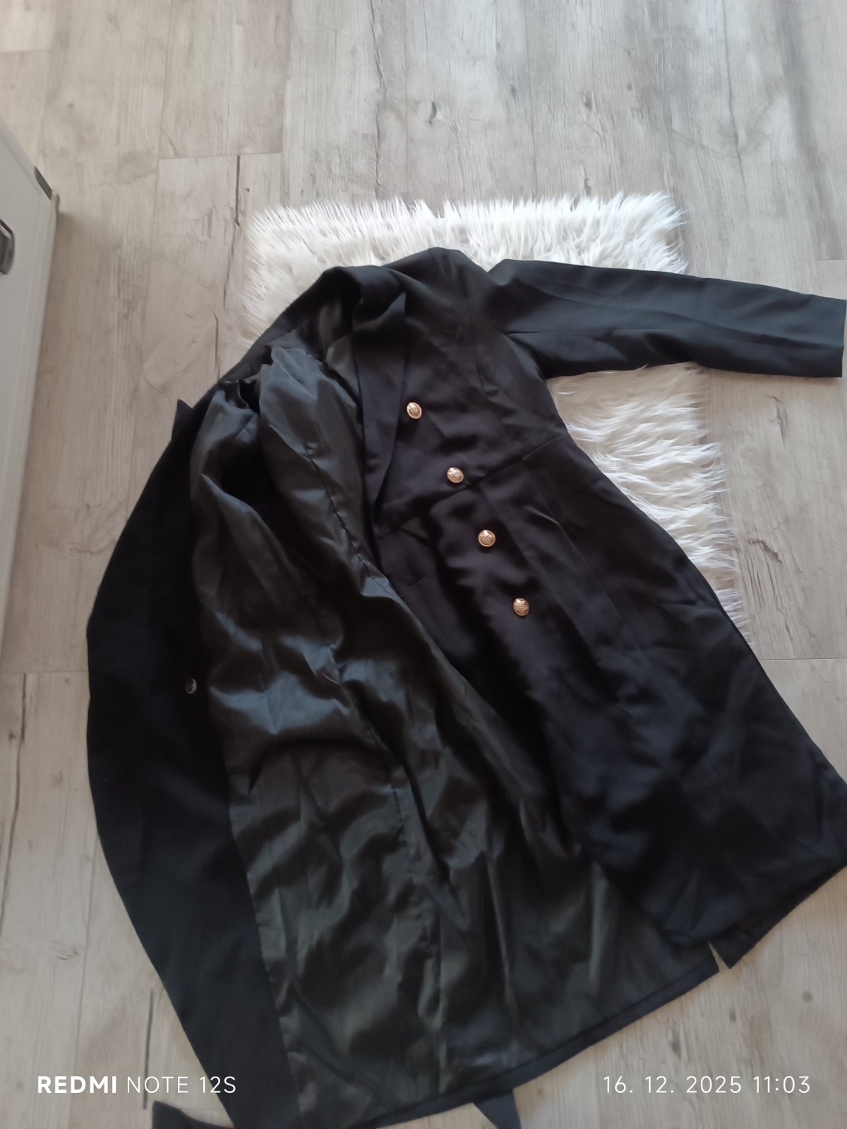 Objednané zo Shein, mne však veľké, veľkosť L, zapínanie na gombíky ,vzadu na viazanie, opasok je napevno. Dĺžka po kolená, sú podšité, vhodné aj ako prechodný trenčkot.