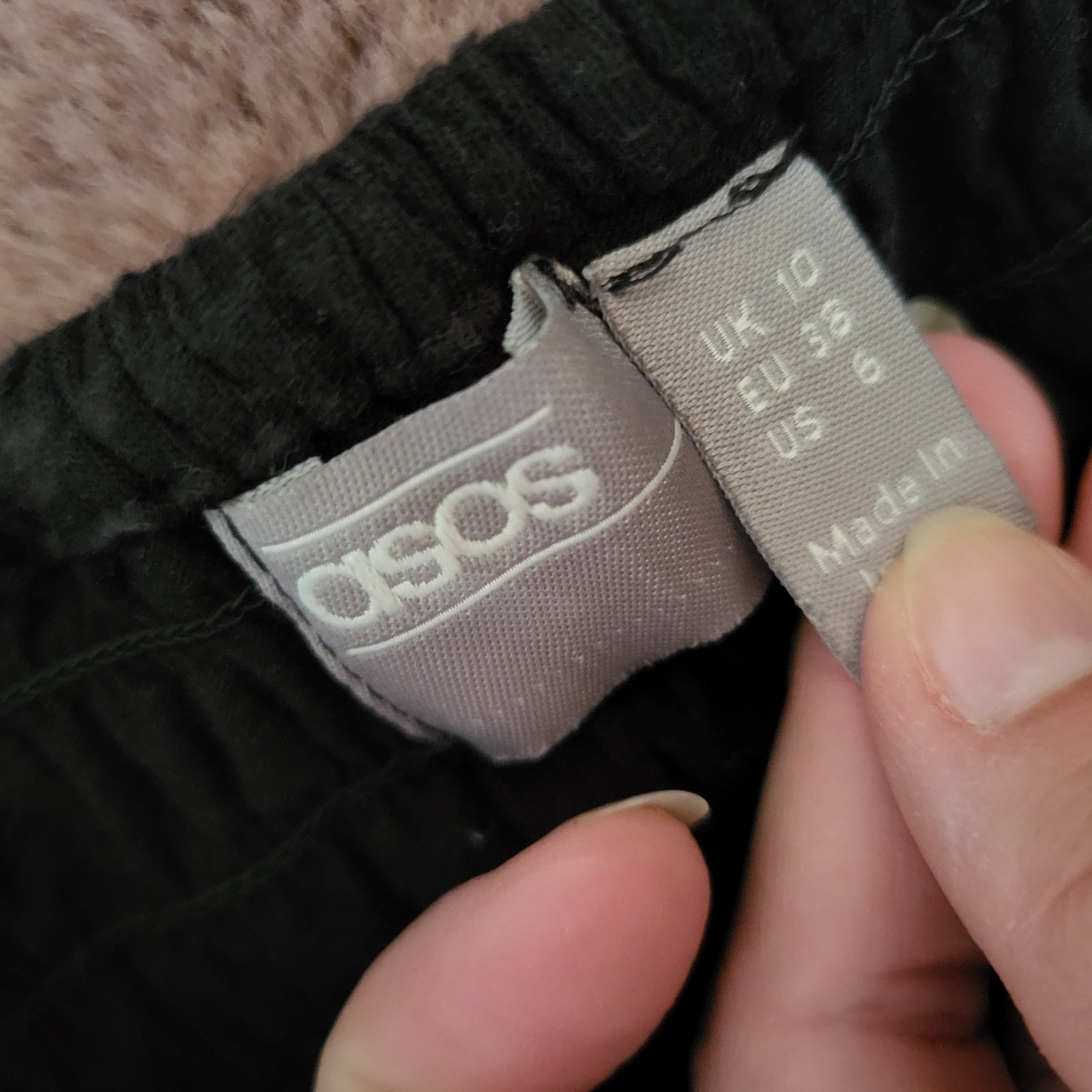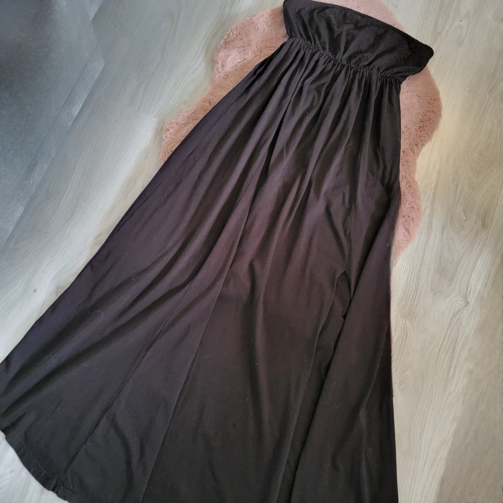 ASOS dlhé čierne saty s razporkom, bez ramienok. Materiál je trickovina. Horná časť je z madeiry. Šaty su nosené, v dobrom stave, farba je mierne bledsia. Veľkosť 38, ale budú dobré aj na 40. Rozmery sú nafotene.