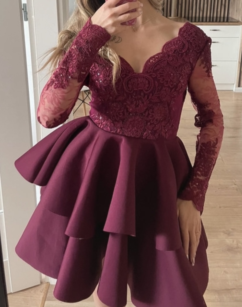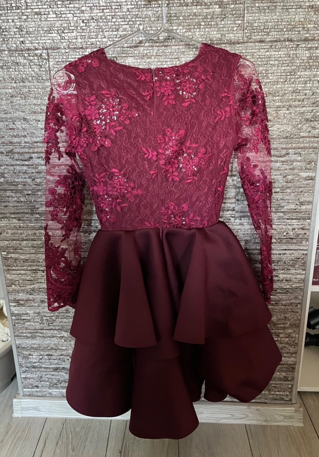 Nádherné,elegantné bordovej farby.Krasne spoločenské šaty na akúkoľvek príležitosť ,sú bez chyb,či poškodenia ,