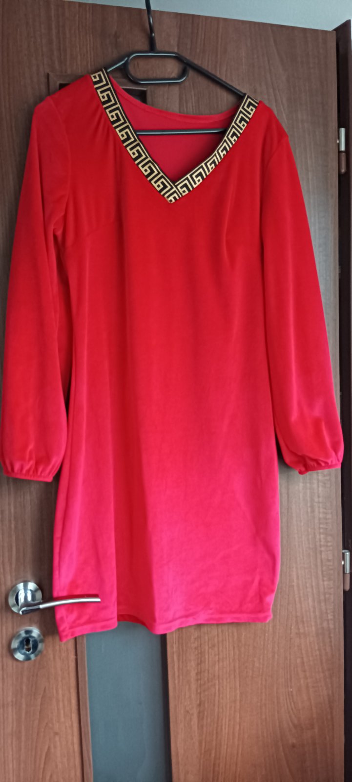 Predám pekné zamatové šaty, jemne elastické, veľkosť Uni S-L, dĺžka 90 CM, rukáv 58 CM, pod prsiami 45 CM. Priliehavý strih, na rukáve gumička. Oblečené raz .