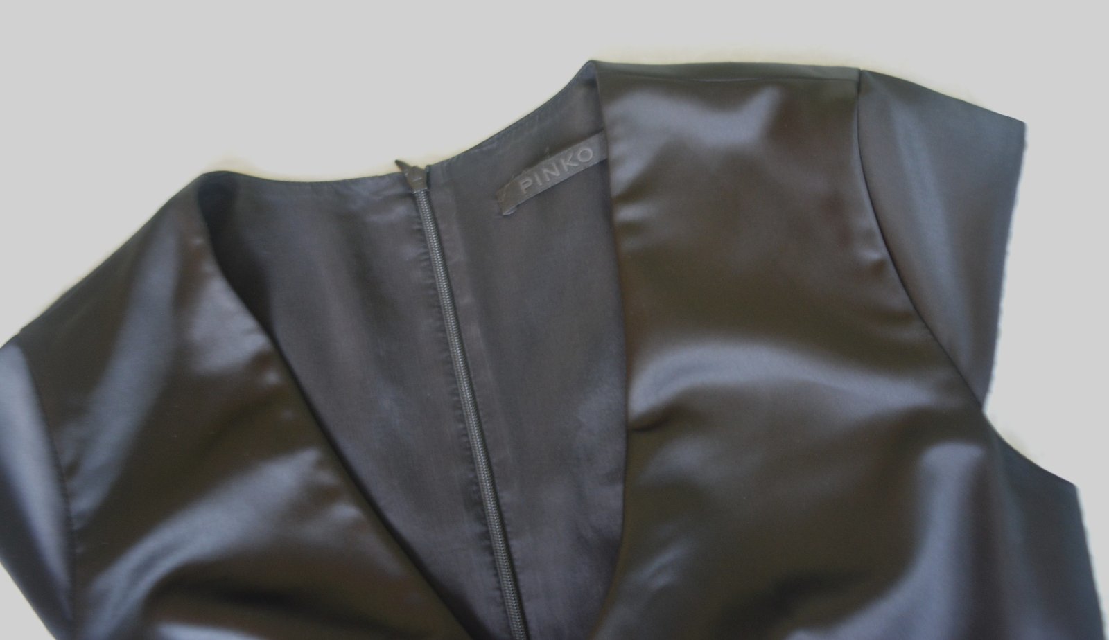 Malé čierne elegantné šaty luxusnej italskej značky PINKO, veľ. S - rozmery: dĺžka 95cm, pod pazuchami 2x43cm, pás do 2x38cm, boky 2x46cm.