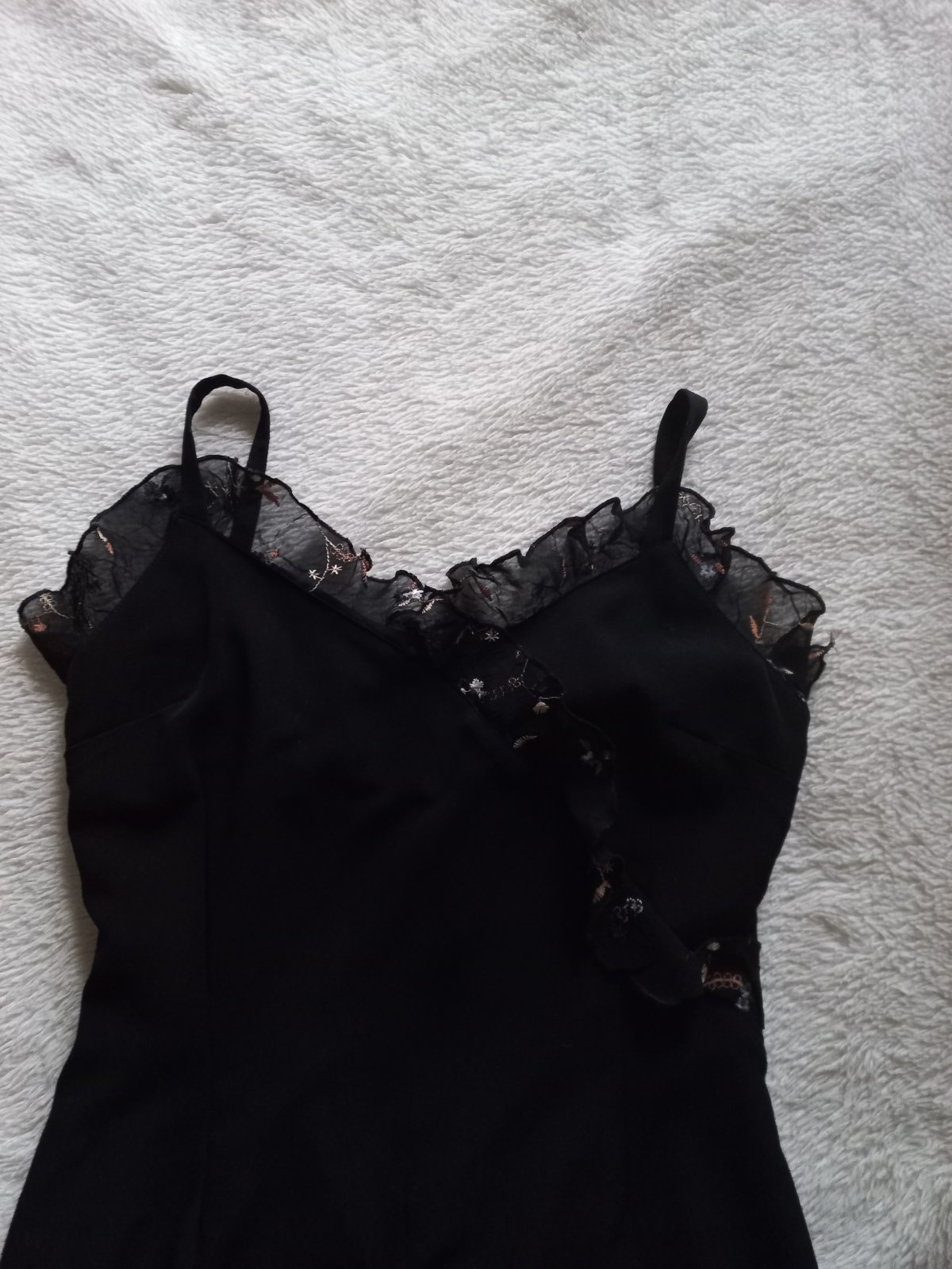 Krásne a kvalitné šaty spoločenské na ramienka. Decentné, jednoduchá ozdoba z vyšívané čipky okolo rozparku na jednej strane dole a okolo vrchnej časti. Dĺžka 134 cm. Pekne lemujú postavu. Vzadu zips. Jemná spoločenská padavá latka. Nepriesvitná. Šatičky su vyrobené na Slovensku. Kvalitné. Vhodné pre S/M veľkosť, kedže sú na ramienka. Kludne premeriam, ak treba Značka: salón ANDREA MARTINY