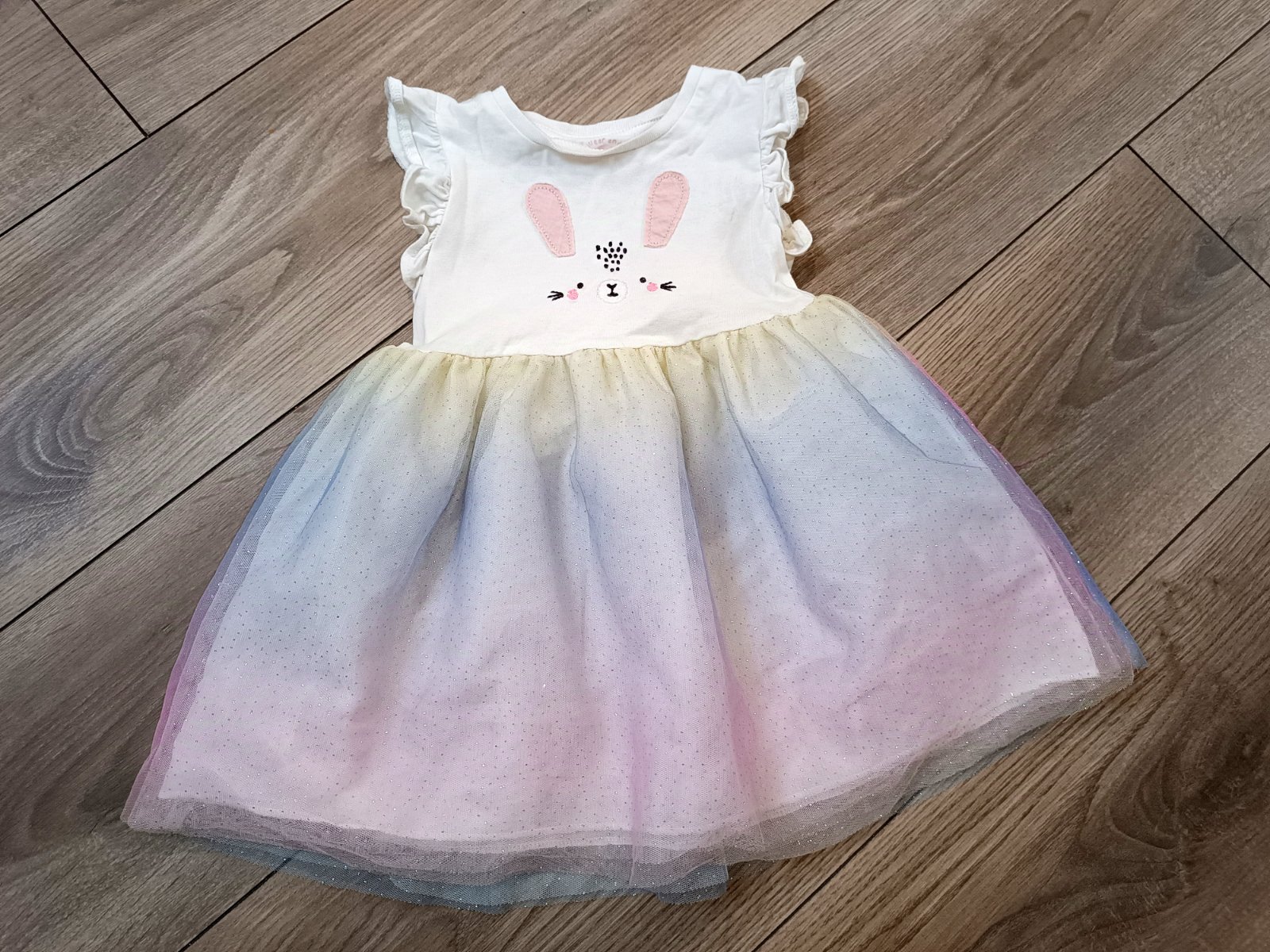 Predám nádherné šaty, na vrchu je tvárička zajka, volániky na pleciach, sukňa je dúhová a celá trblietavá. Sú v top stave.