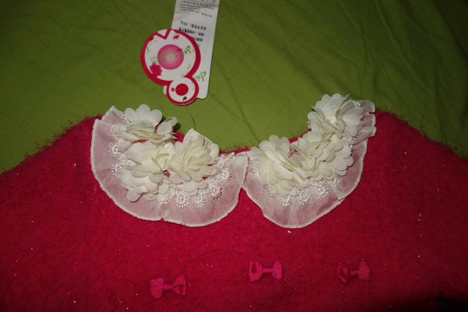 Krasne satocky na zimu- nove, s visackami. Pulovrik je nasity, neda sa dat dole. Su skor na sviatocnu prilezitost. Velkost je uvedena ako 100.