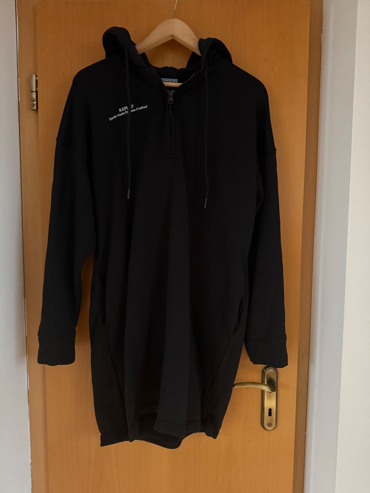 Teplákové šaty Replay. Veľkosť XXS ale majú voľný strih takže sadnú na Xs-S. Hrubšia teplakovina. Majú aj kapucňu a vrecká. Dajú sa nosiť aj ako predĺžená mikina. Kupované boli v butiku Replay v Ostrave. Pôvodná cena bola vysoká. Oblečené boli raz.