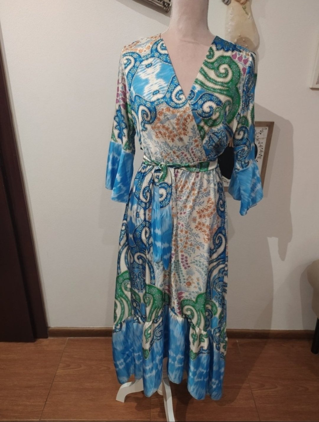 SkladomNádherné letné šaty,3/4 rukáv ,v páse na gumu.vel Uni vhodné pre veľ S-M