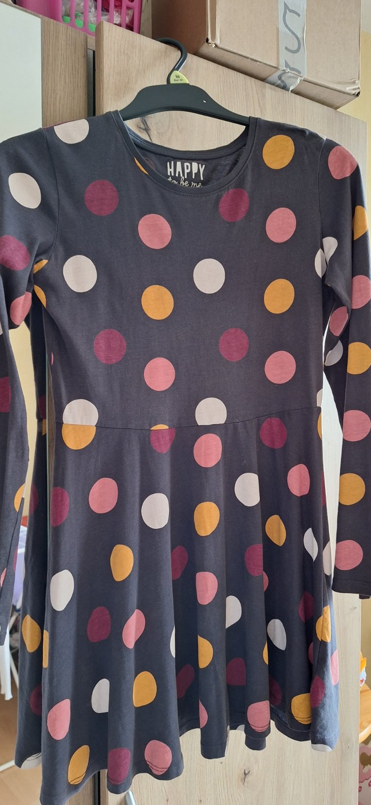 Dievčenské šaty v peknom nosenom stave. Bez poškodenia, dier a fľakov. Sú vhodné na jeseň, zimu a jar. Veľkosť je uvedená 134/140, rozmery - viď foto. Nie sú vyblednuté, len sa mi to nedá lepšie n...