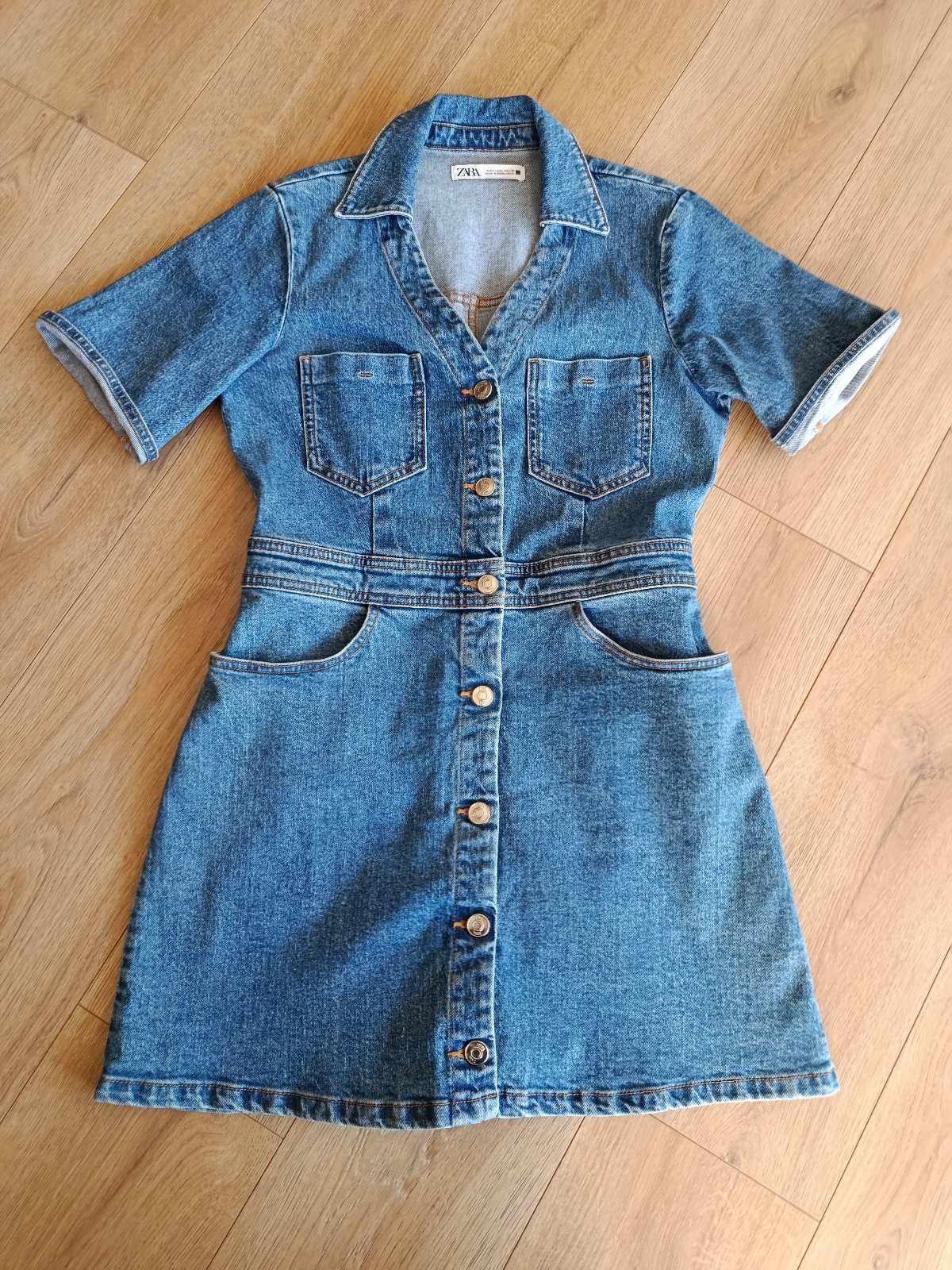 Predám mini šaty zn. ZARA, veľkosť sedí na Sko, príp menšie Mko, dĺžka 83cm, šírka pod rukávmi 46cm, oblečené iba párkrát, kvalitná rifľovina, kvalitné šatky, oplatí sa.
