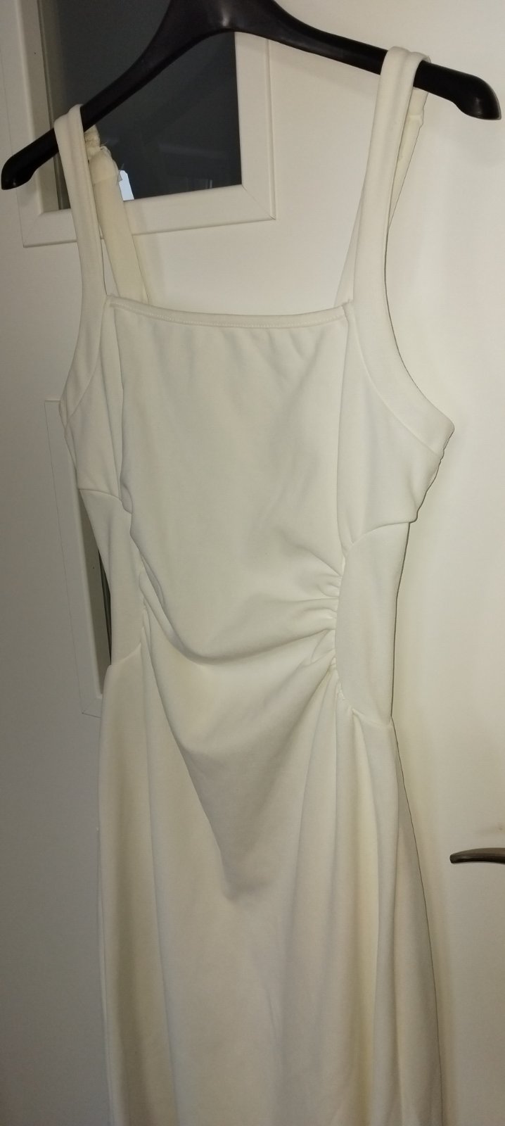 Slávnostné smotanové šaty s lesklým odleskom, 1x oblečené. Top stav