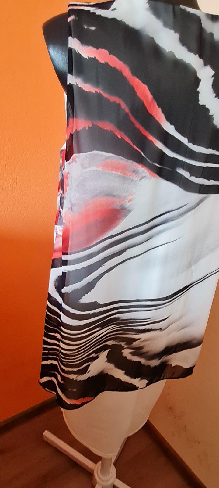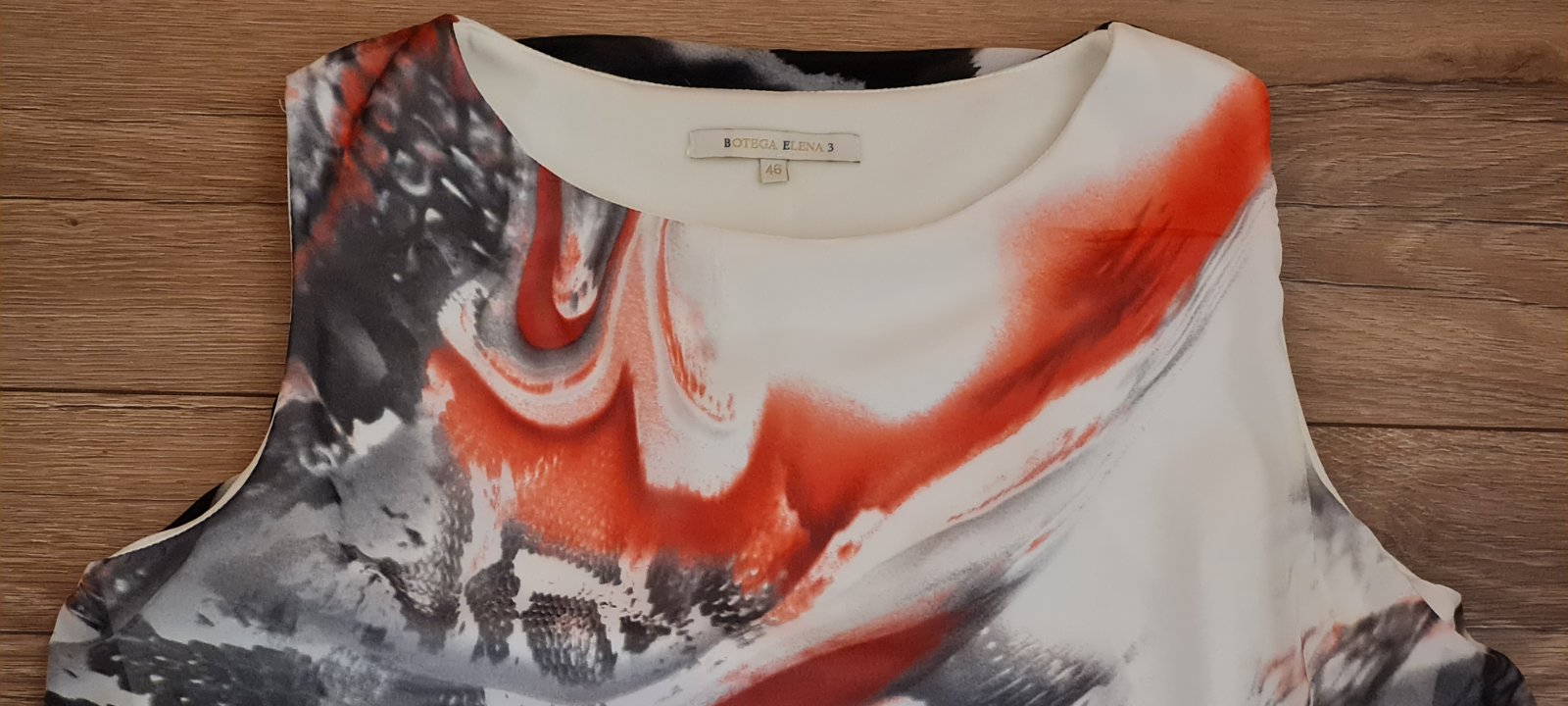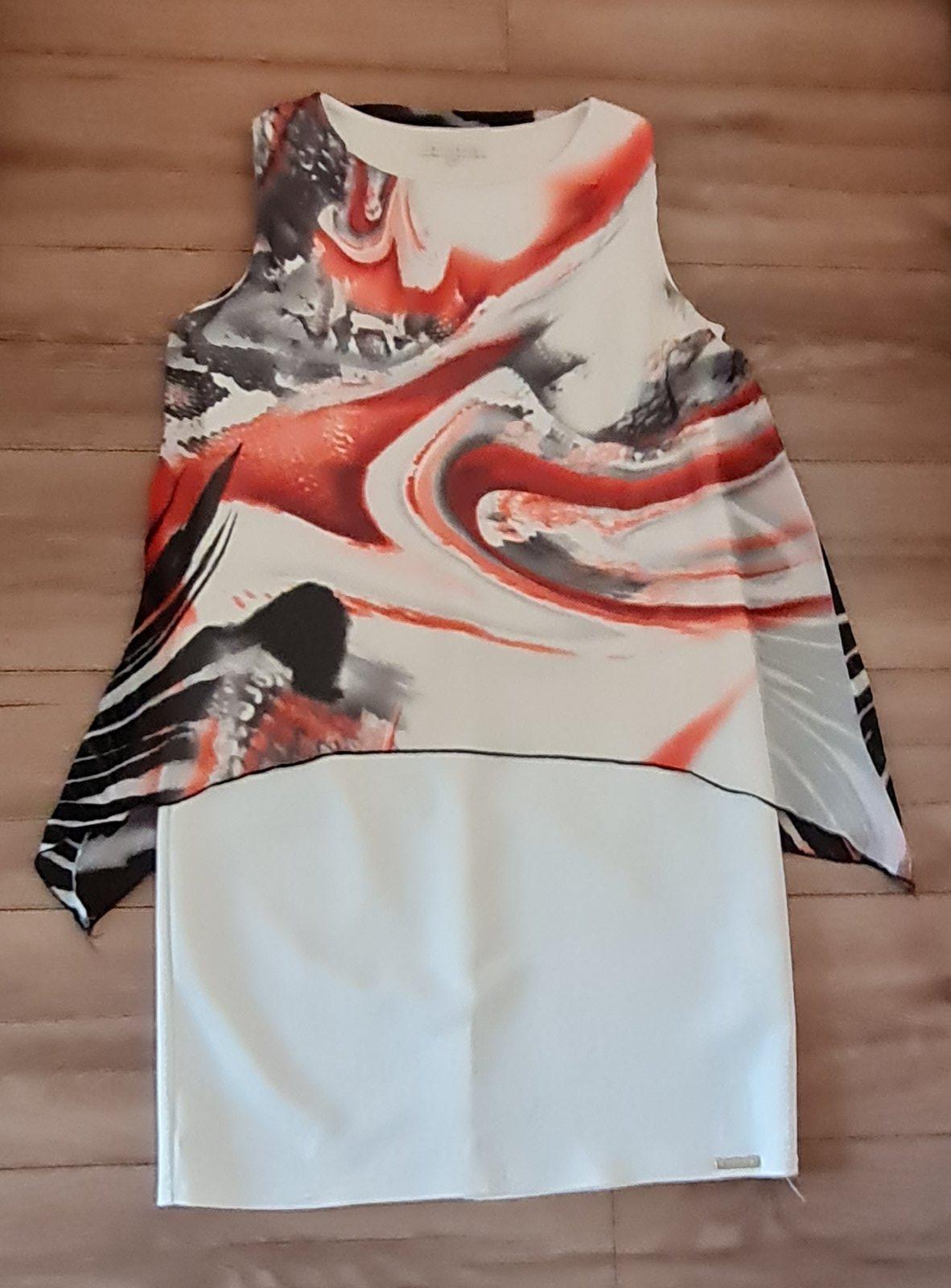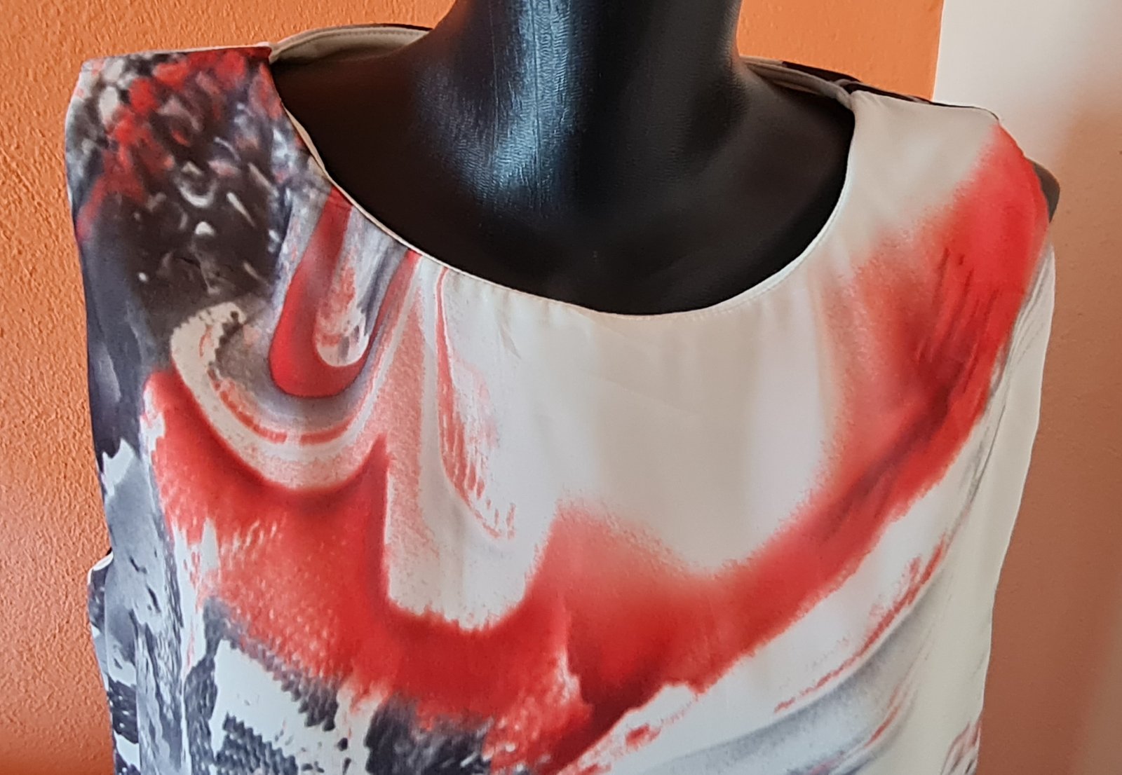 Šaty, ktoré sú snom každej ženy ! Sú krásne a ešte aj zakryjú všetky nedostatky, popôrodné kilá a pod. Klasické úzke biznisové šaty a na nich šifónový široký vršok, ktorý zakryje všetko, čo treba. Zloženie polyester + elastan, vpredu som si všimla maličký hnedý pásik, ktorý pôjde vyprať, perfektný stav