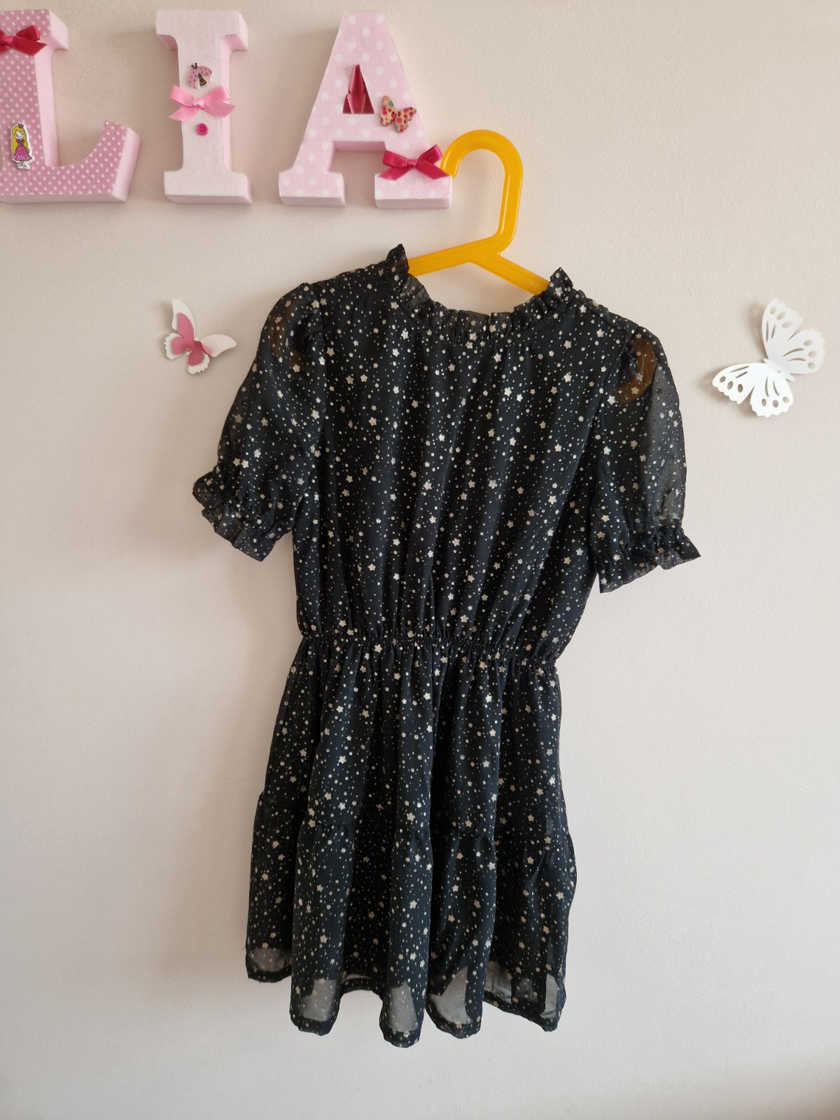 Elegantné šaty, so zlatými hviezdičkami.
