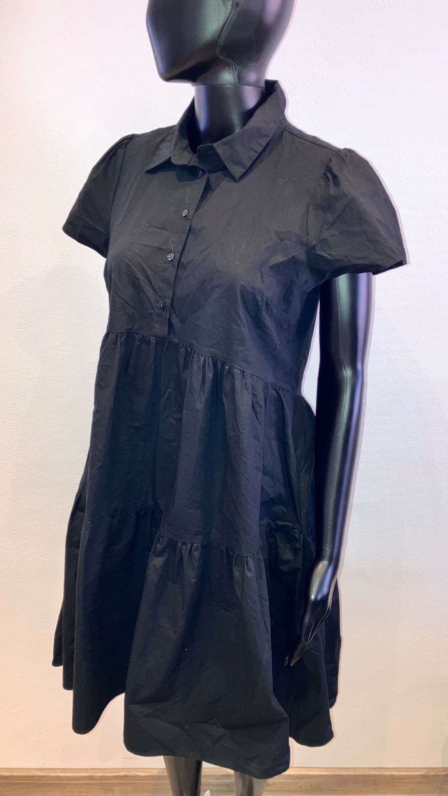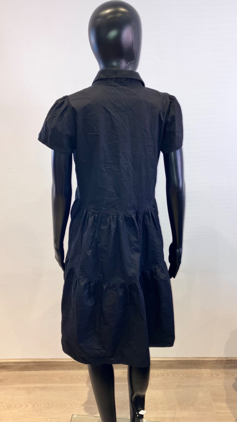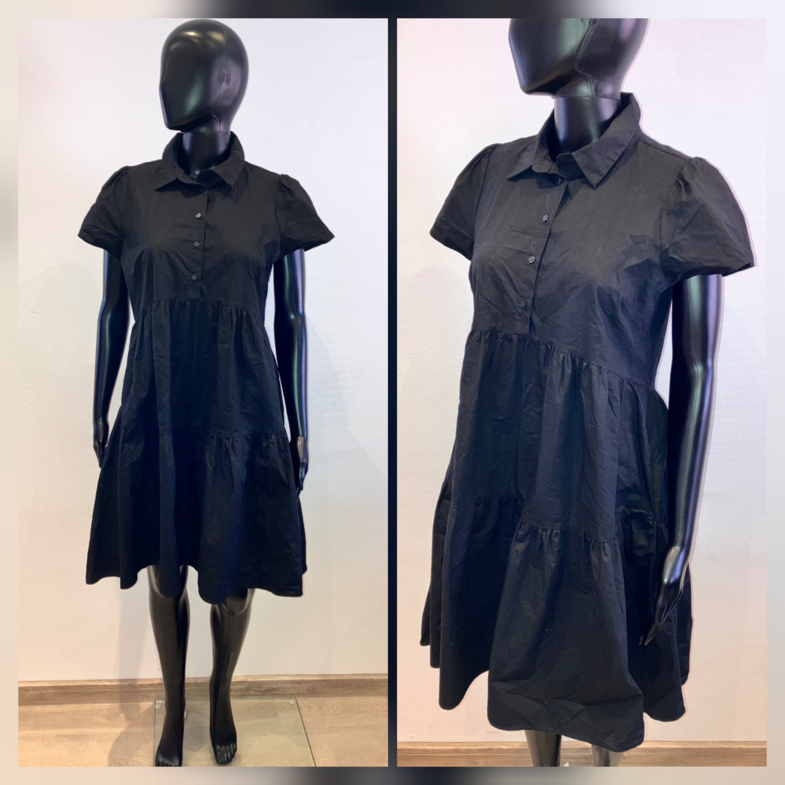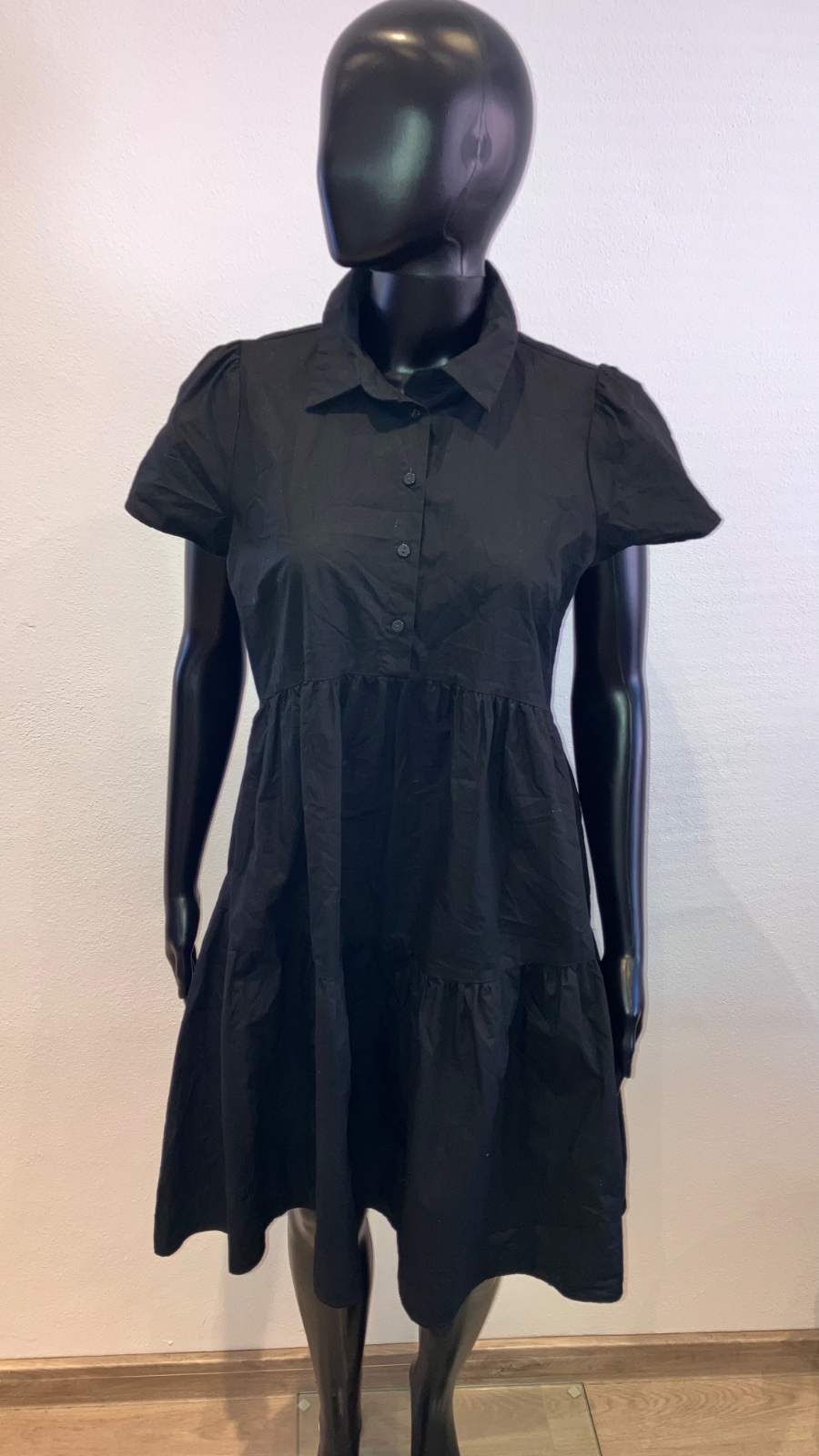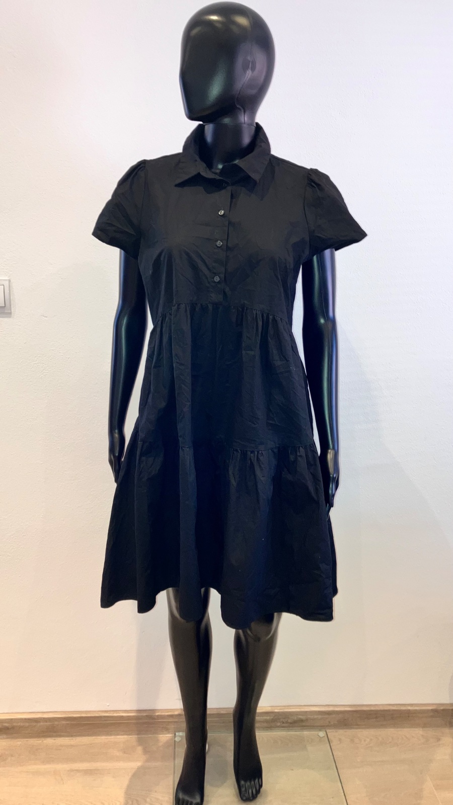 Dámske košeľové šaty s krátkym rukávom a volánmi, nie sú elastické. Zapínanie vpredu na gombíky.