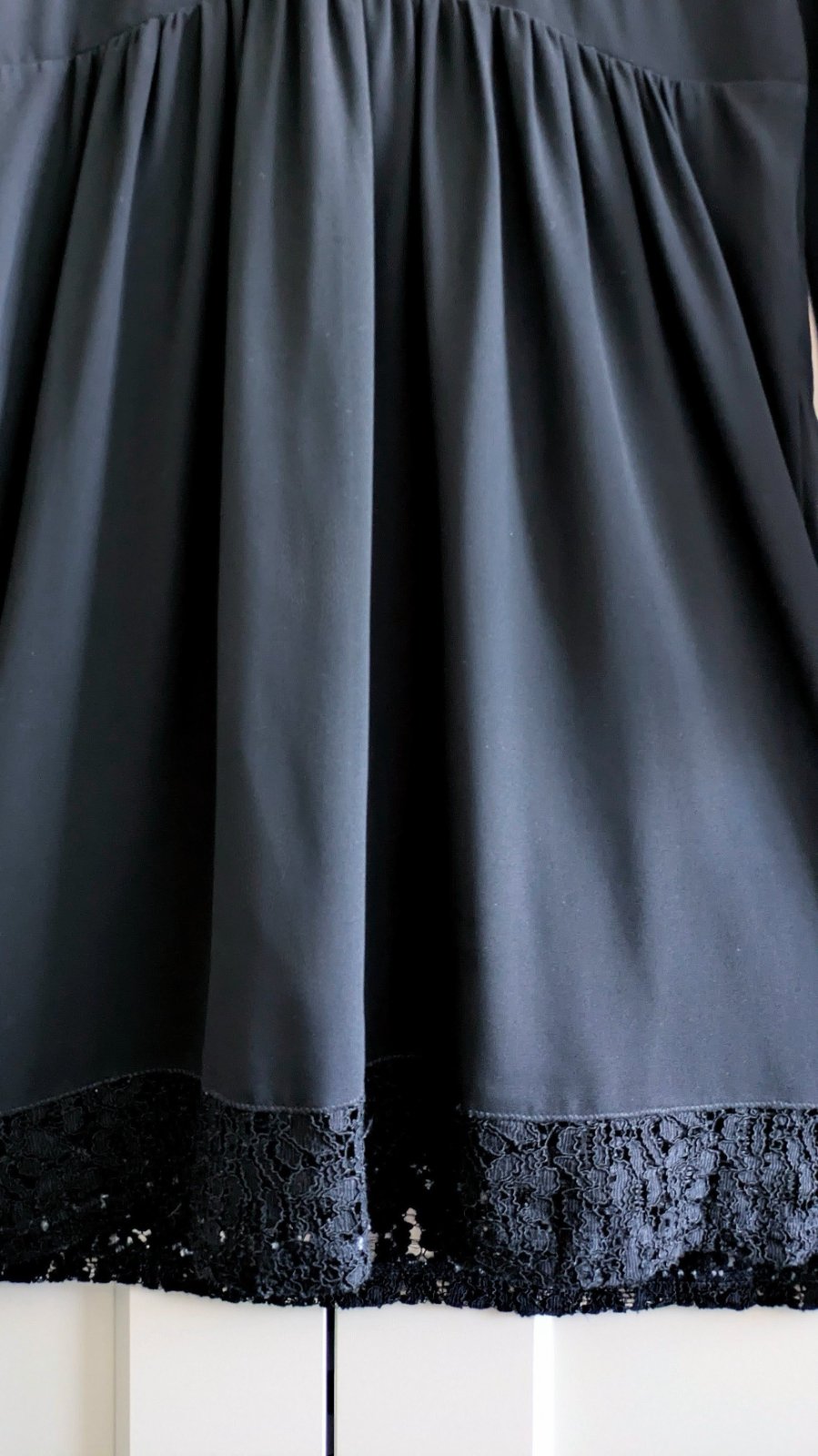 Elegantné šaty Gaudi so zvýrazneným pásom, jemným nariasením v oblasti dekoltu a čipkou v spodnej časti a na chrbte. Pekný ženský strih, príjemný padavý materiál.