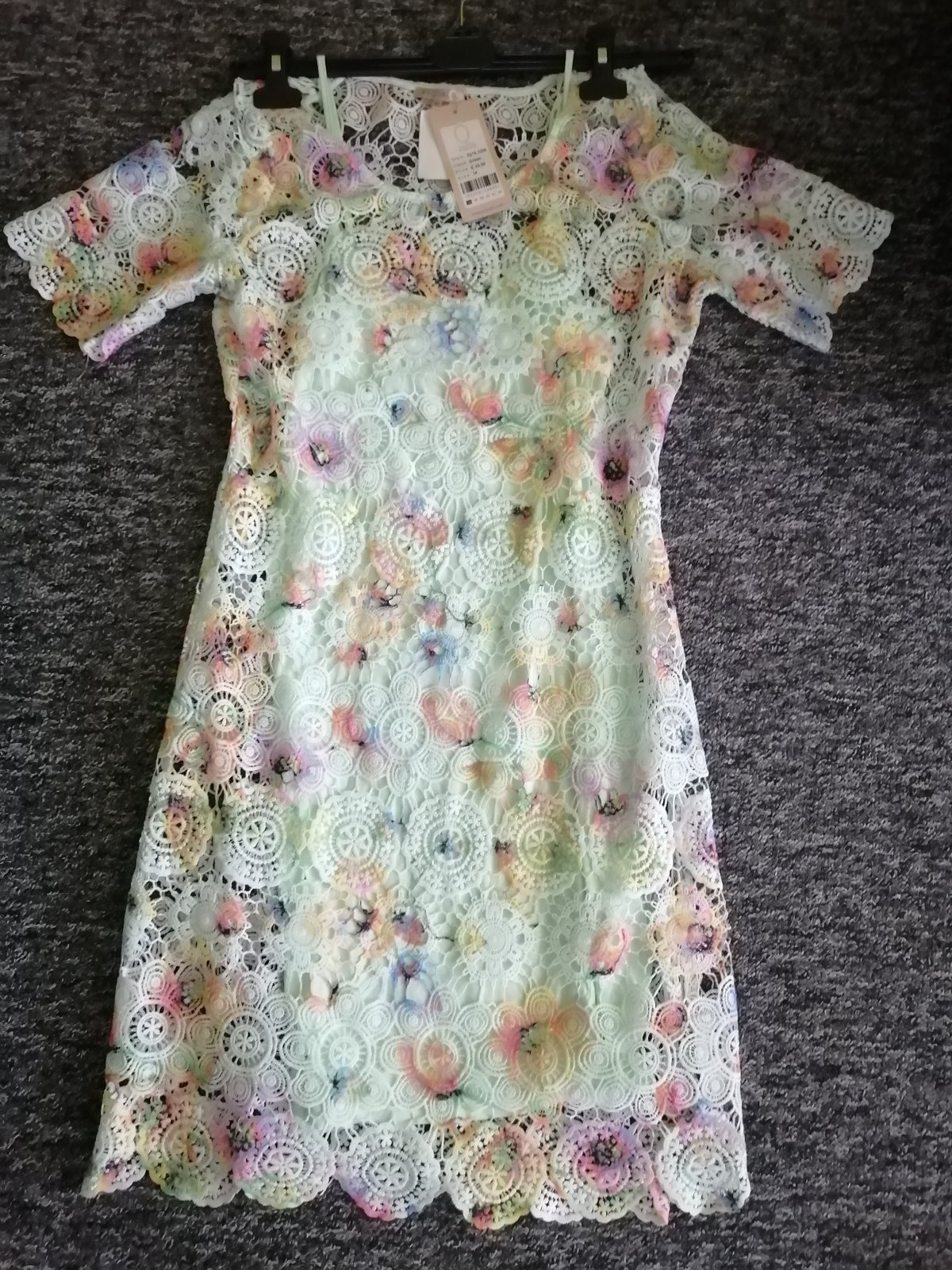 SkladomNádherné značkové šaty, skladajú sa z 2 častí - spodnice a krajkových šiat. Veľkostne sedia na S-M