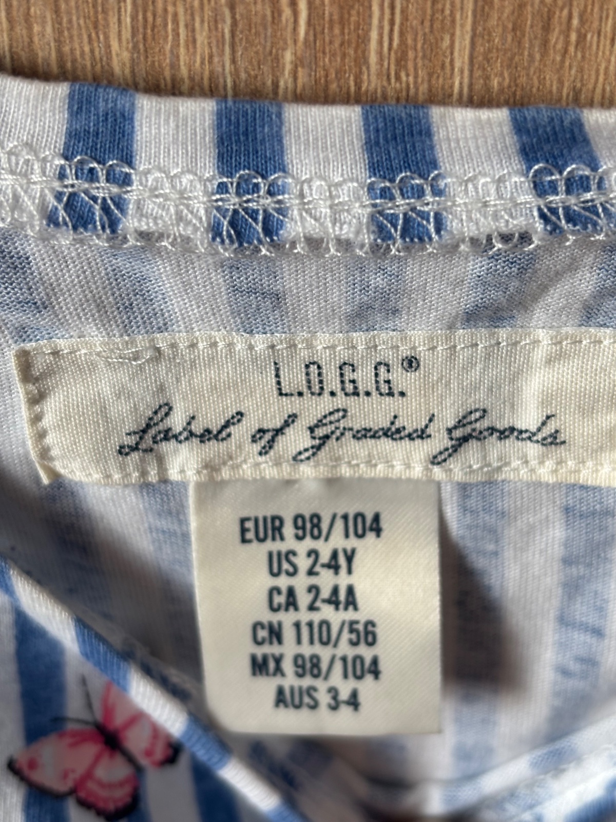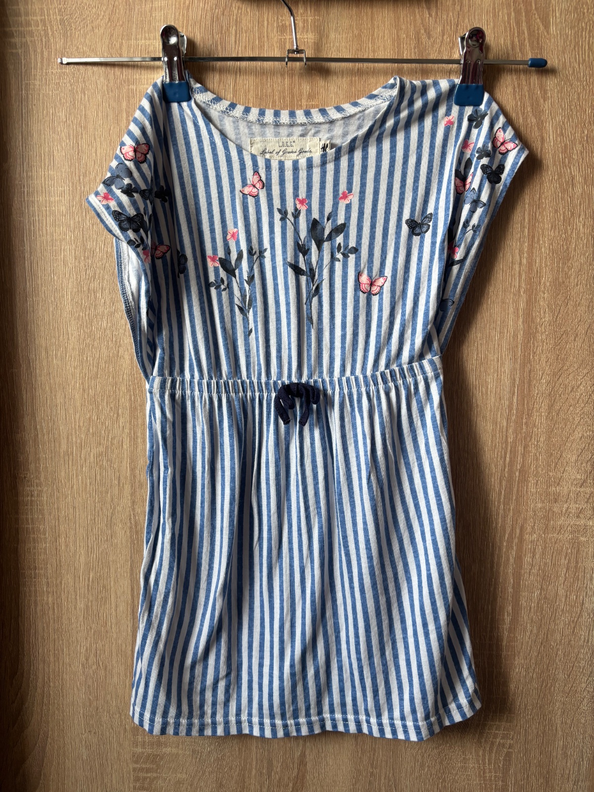 Zachovalé šaty bez fľakov a poškodení. Veľkosť 98/110. Dĺžka od pleca 56 cm, pod pazuchami 28 cm.