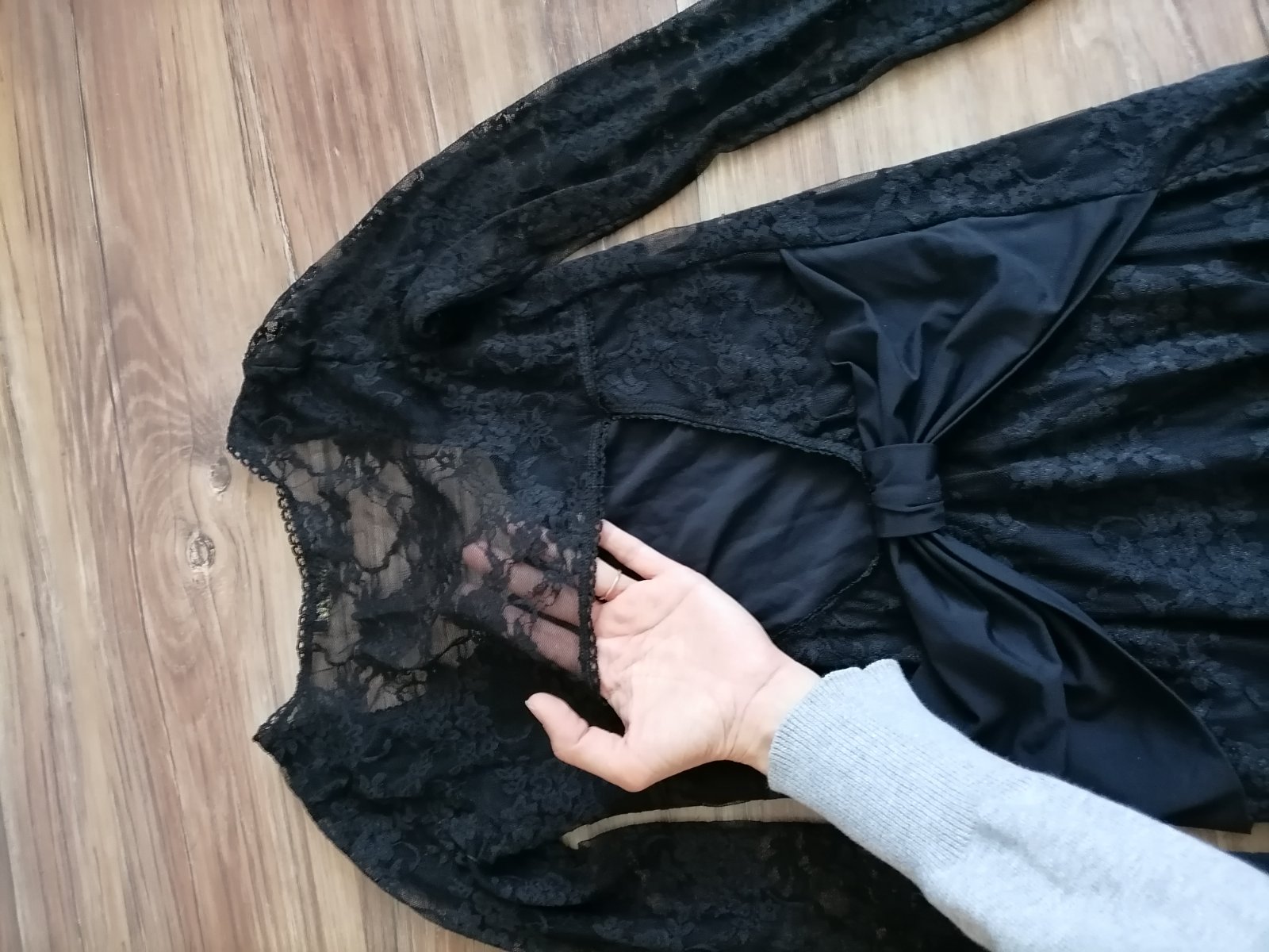 Krajkové pohodlné, veľmi strecove šaty H&M, decentne priesvitné, len na rukávoch, krku, ostatné podšité.