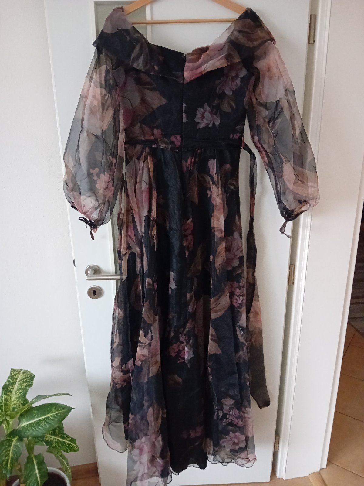 Krásny model, dám ešte viac foto. Dajú sa stiahnuť na ramená je tam silikónová gumička, drží to skvelo, prsia sú podšité tak som vôbec nemala podprsenku. Rázporok vpredu, vzadu sú na zips, ľahučké, krásne, všetci ich obdivovali... Na rukávoch mašličky, dajú sa rozviazať, aj vpáse opasok s mašľou. Naozaj jemné, krásne a romantické šaty....Ja meriam 173 cm a mala som lodičky cca 8 cm vysoké, potom som sa prezula do balerínok. Predok je trošku kratší a zadná časť dlhšia....