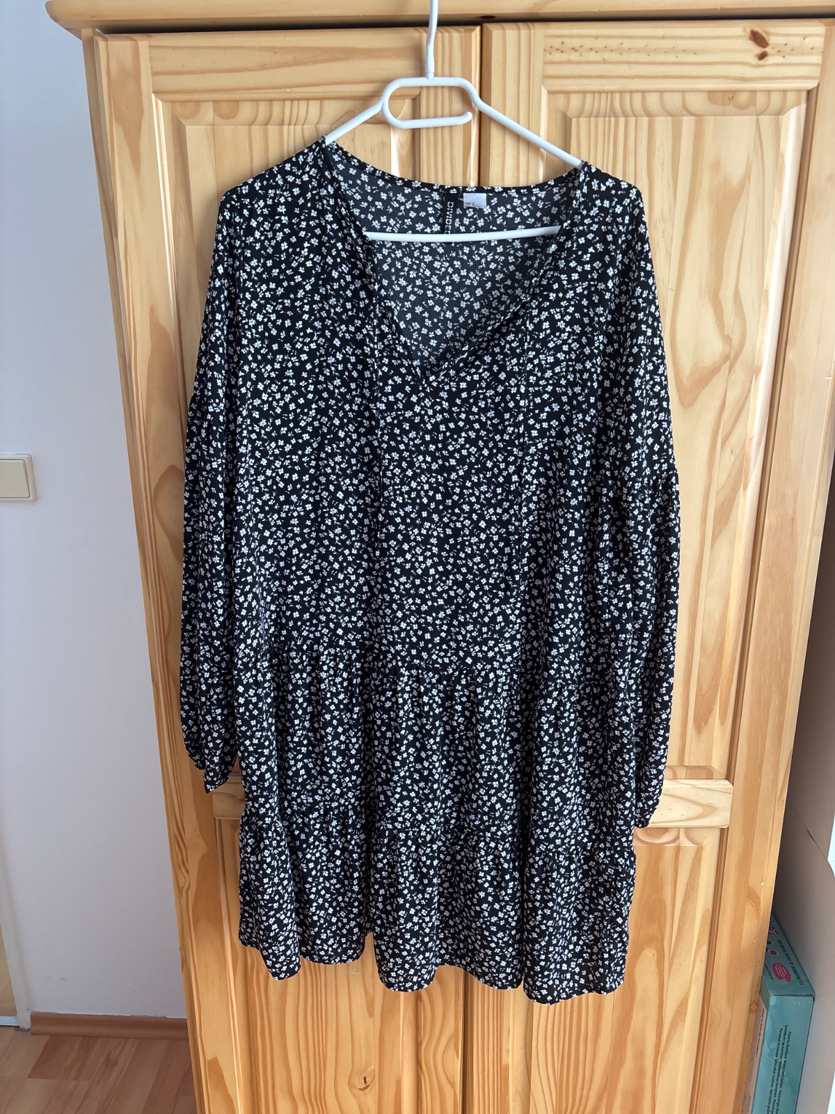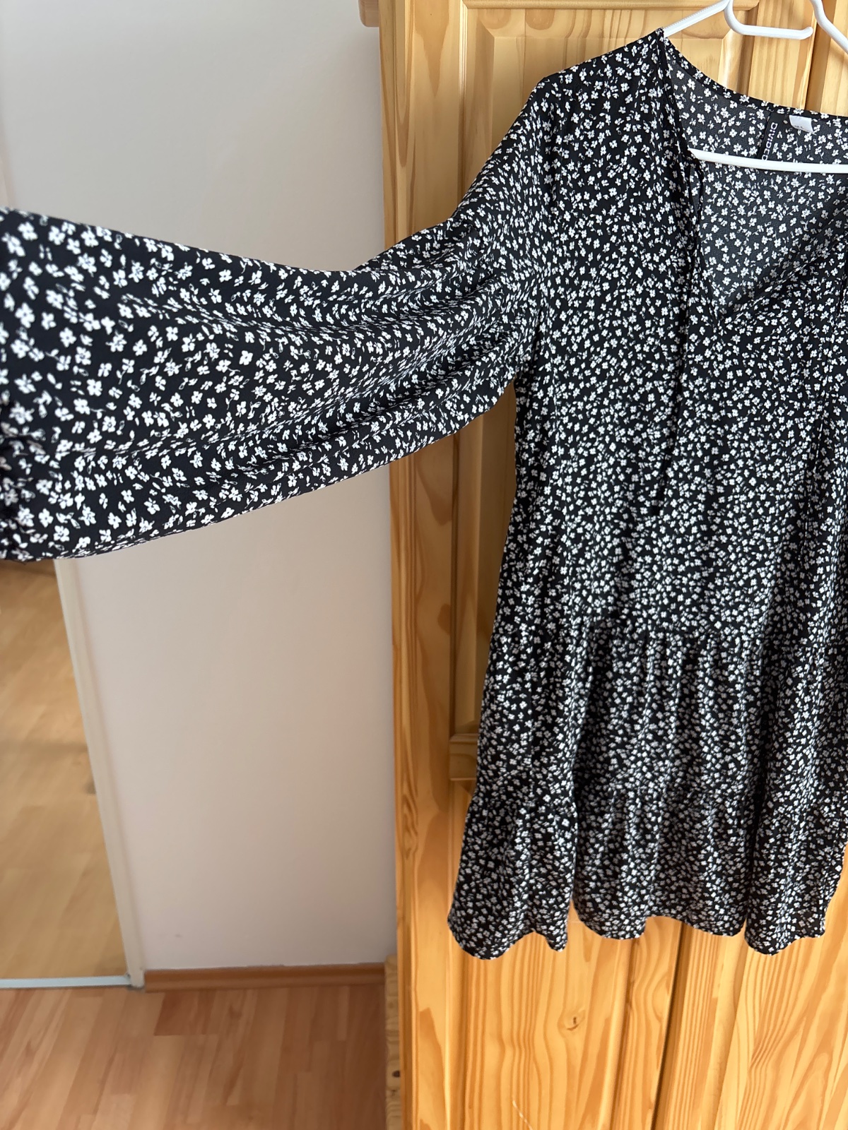 Krasne-cierne s bielimi kvietkami,volanova ackova”sukna,rukav volny na konci gumka,polyester s elastanom-netreba zehlit,su vzdusne,dlzka-90cm,sirka-50cm