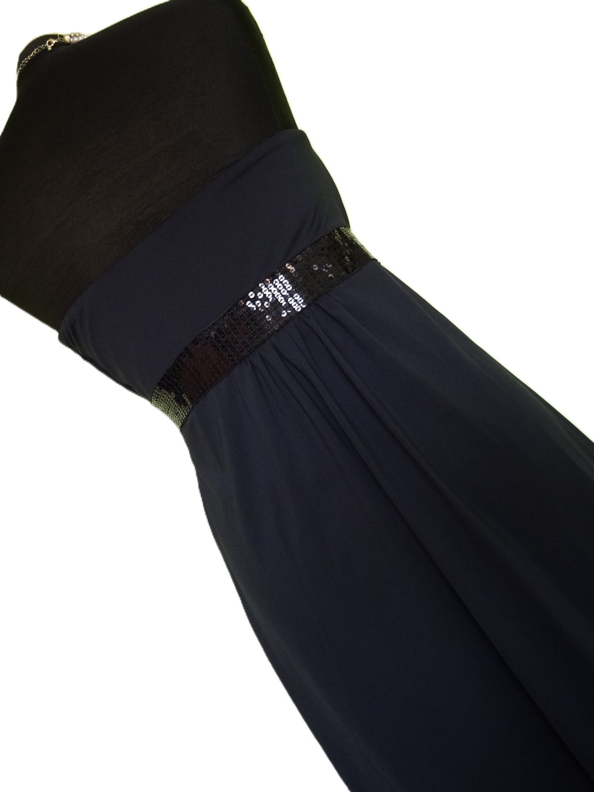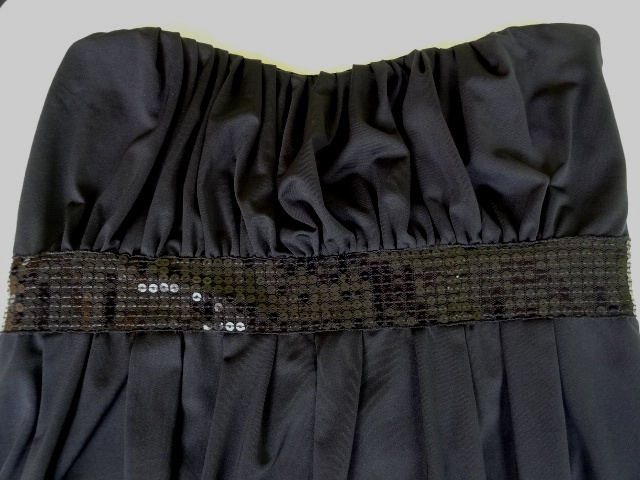Pekné spoločenské šaty bez ramienok, veľ. S, dlžka od pazuchy dole je 75cm, pod pazuchami 35cm, ale je to veľmi elastické, prispôsobí sa.