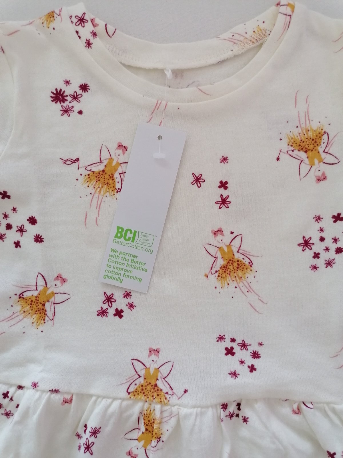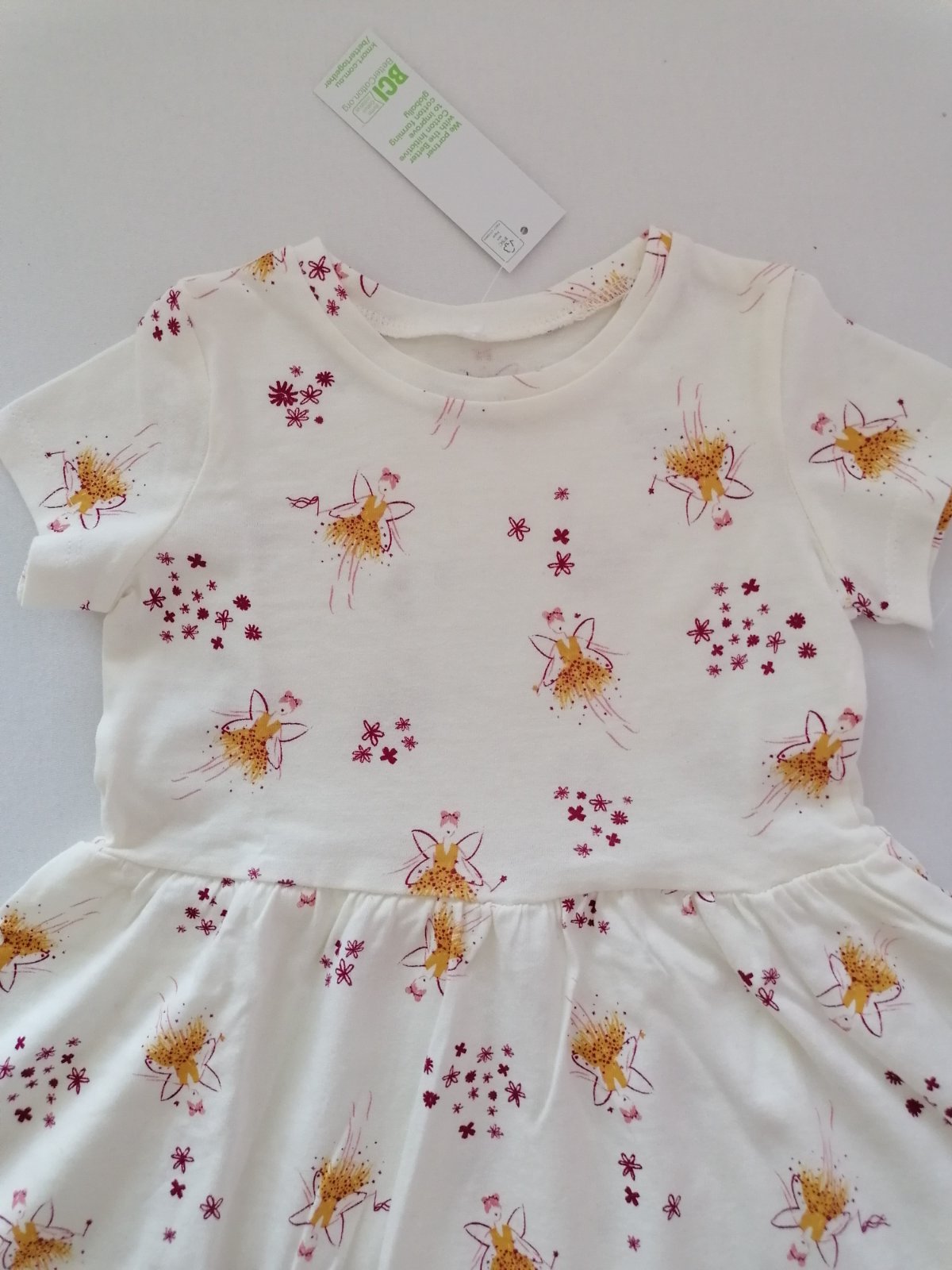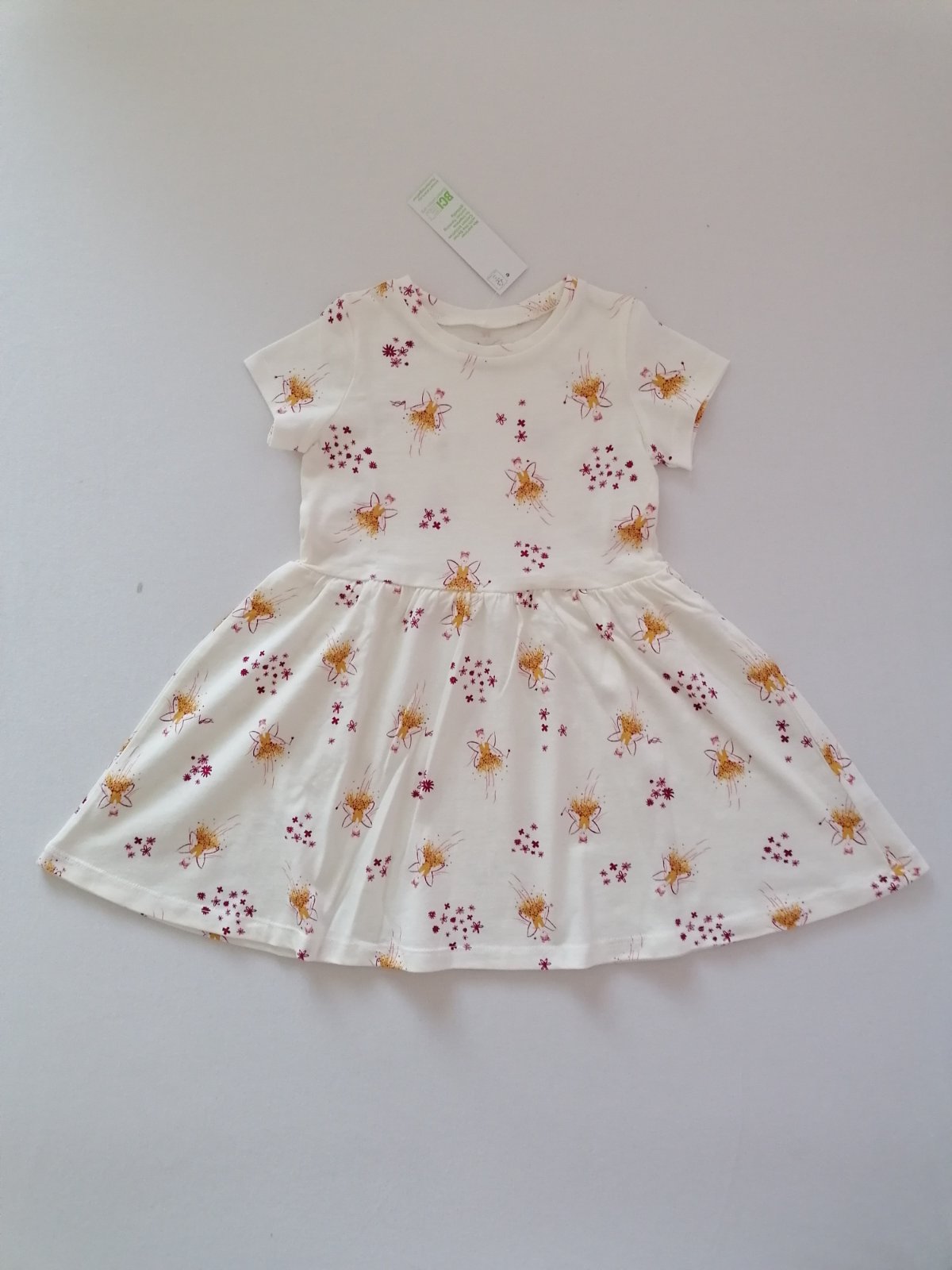 Krasne, nove, bavlnene šatočky s obrazkami víl a kvietkov. Prijemny material. Farba je biela-smotanova. Saty su z Australie, znacka Anko, velkostne sedia na nasu 98, prip. 98/104 (kludne mi napiste, ak by ste chceli premerat). Nove, nenosene, top stav. S visackou - vhodne aj ako darcek.