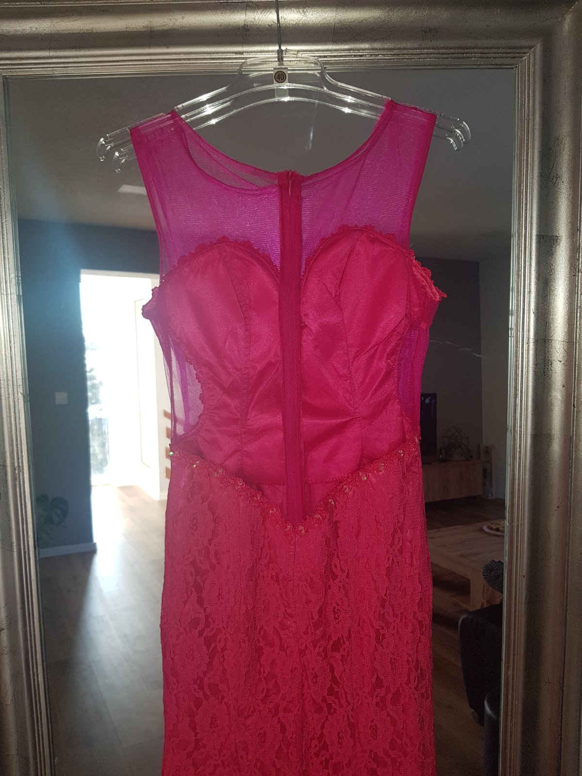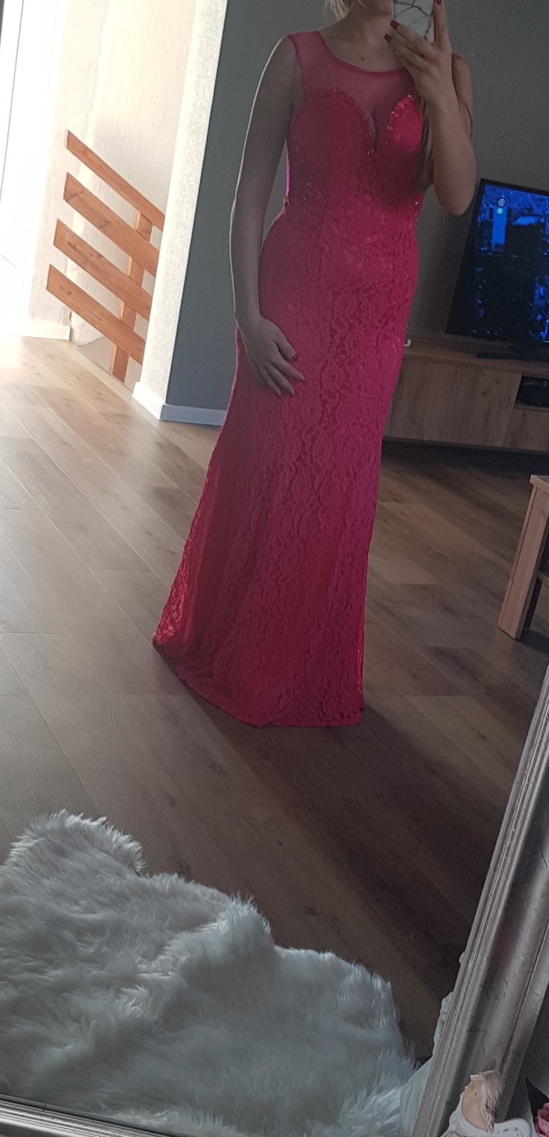 Krasne šaty priesvitny chrbat a dekolt. Veľ. 36. Oblečene iba 1x. šaty majú vrchnú časť krásne čipkovanú a sú podšité spodničkou . Pc 89e.