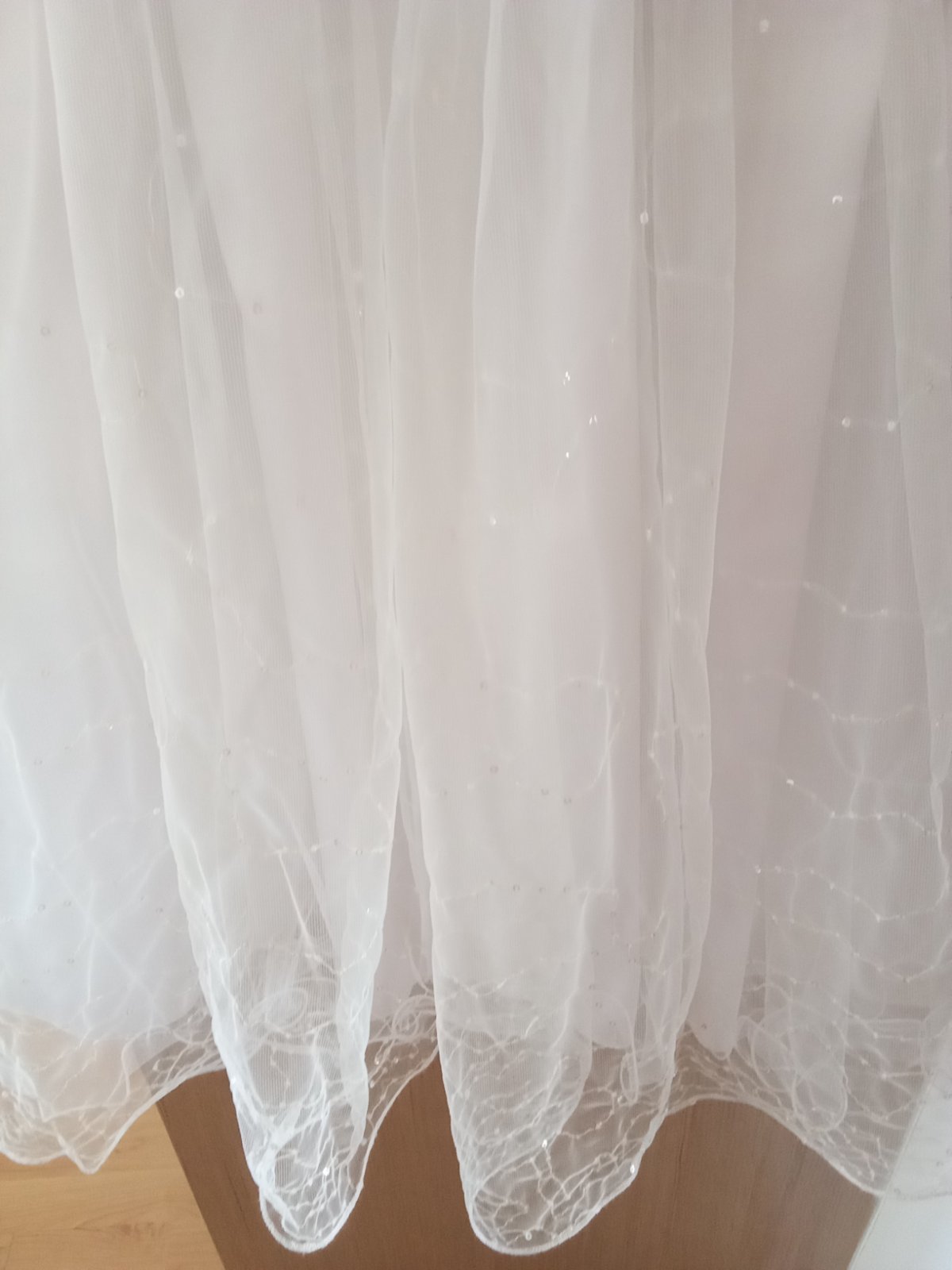 Šaty na prvé sväté prijímanie z bieleho saténu. Spodok šiat je vyrobený z bavlnenej podšívky, dodatočne zakončenej tylom. Krásna aplikácia ukončená perlami v páse. Krátke rukávy. Dlhé členkové...