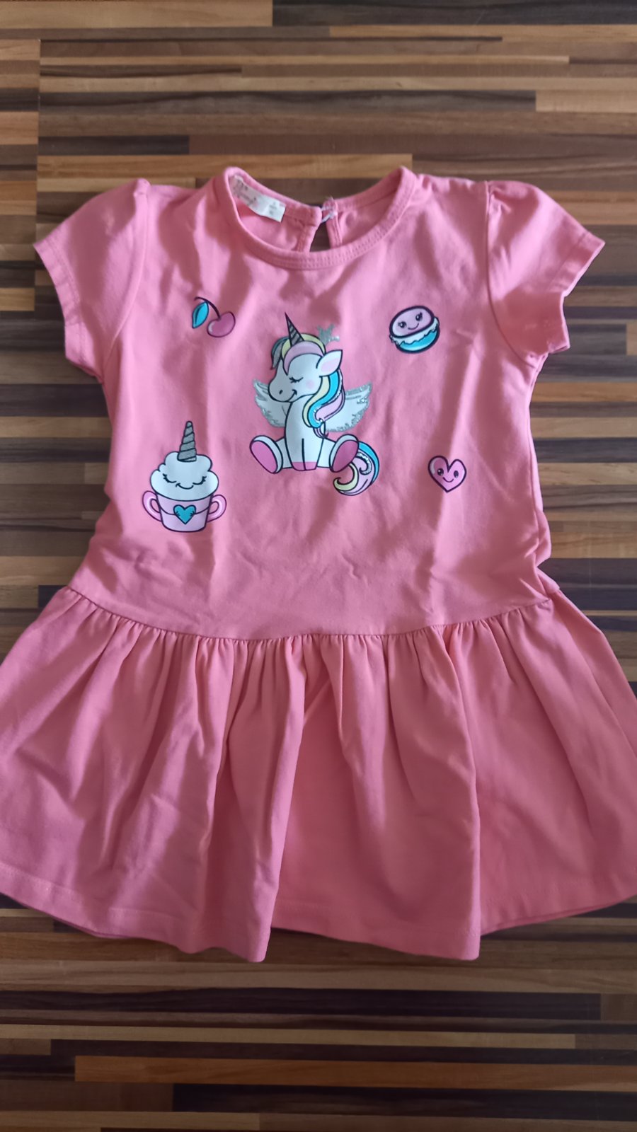Krásne šaty pre malé dámy. S motívom Príjemné, pohodlné, netlačia voľný tričkový strih. Výborne sa nosia v lete na plavky alebo do každého počasia. Farba ako na fotografii. Rozmer: 92, 98, 104, 11...