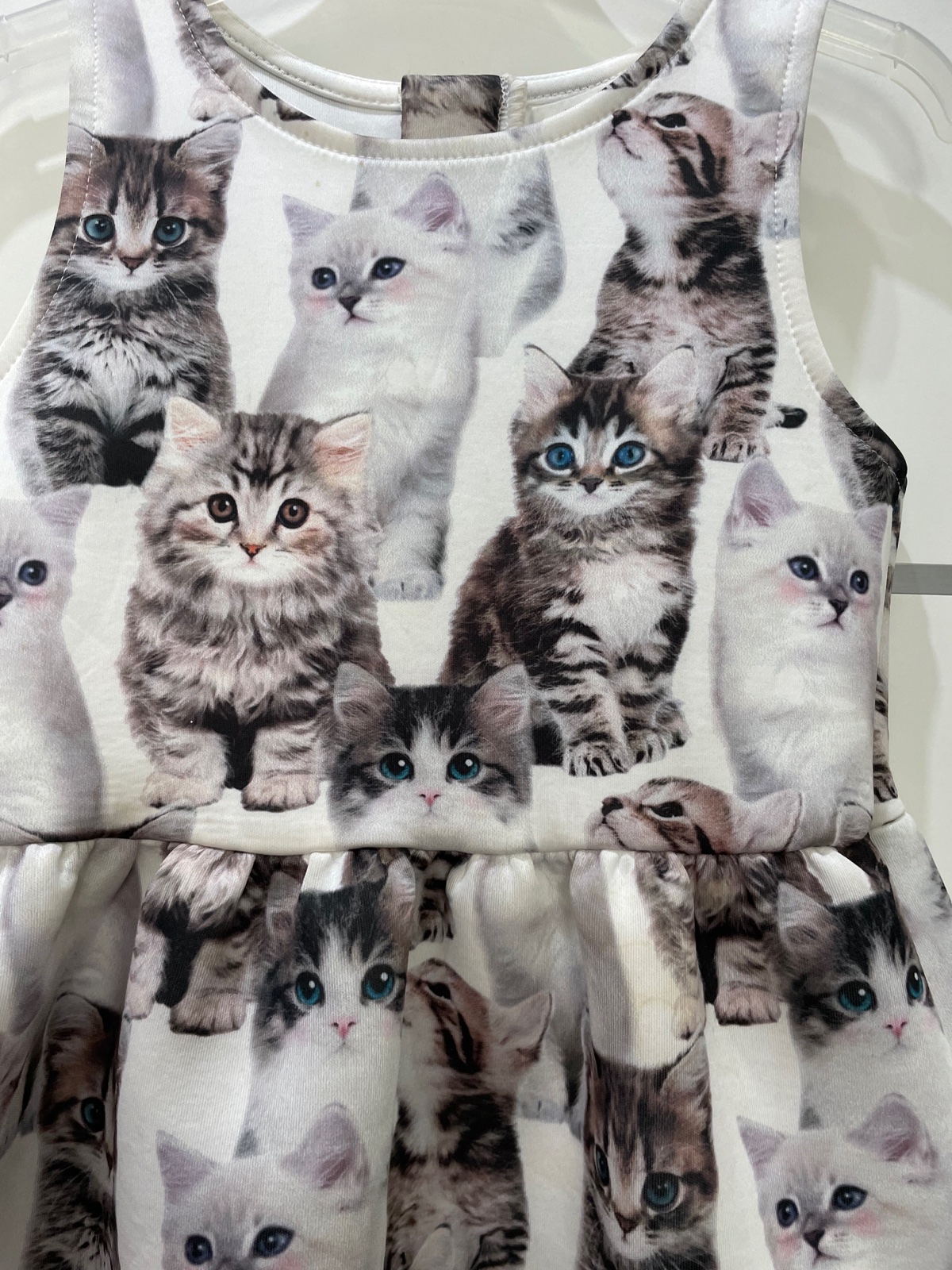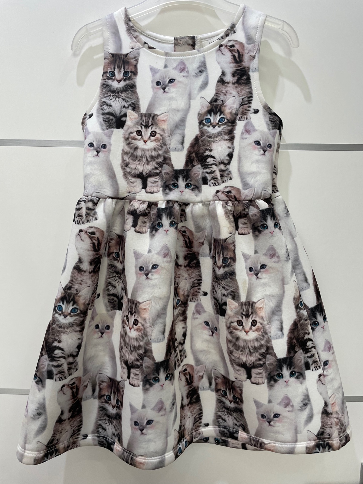 Šaty posiate milenými obrázkami mačiatok. Bez akýchkoľvek poškodení. Veľkosť 110/116.