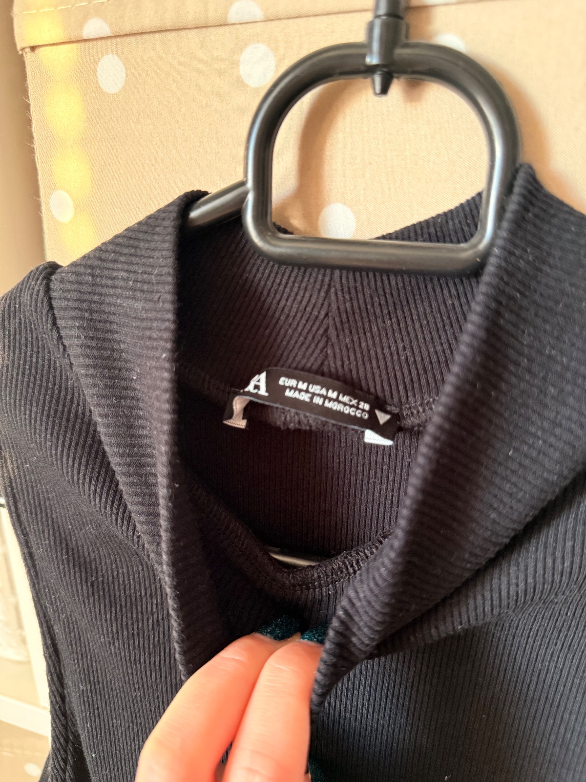 478o. cierne damske saty Zara, velk. M, saty su nosene, elasticke, vysacka je odstrihnuta material je bavlna a elastan, boli par x oblecene treba ich vyprat, vzadu na chrbte a na boku sa povolilo š...