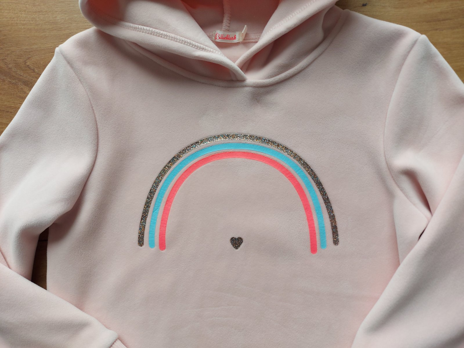 Pohodlné šaty šité z fantastického mäkkého "hladkavého" materiálu majú kapucňu a vpredu aplikáciu dúhy. Patenty a lem šiat sú vrúbkované.