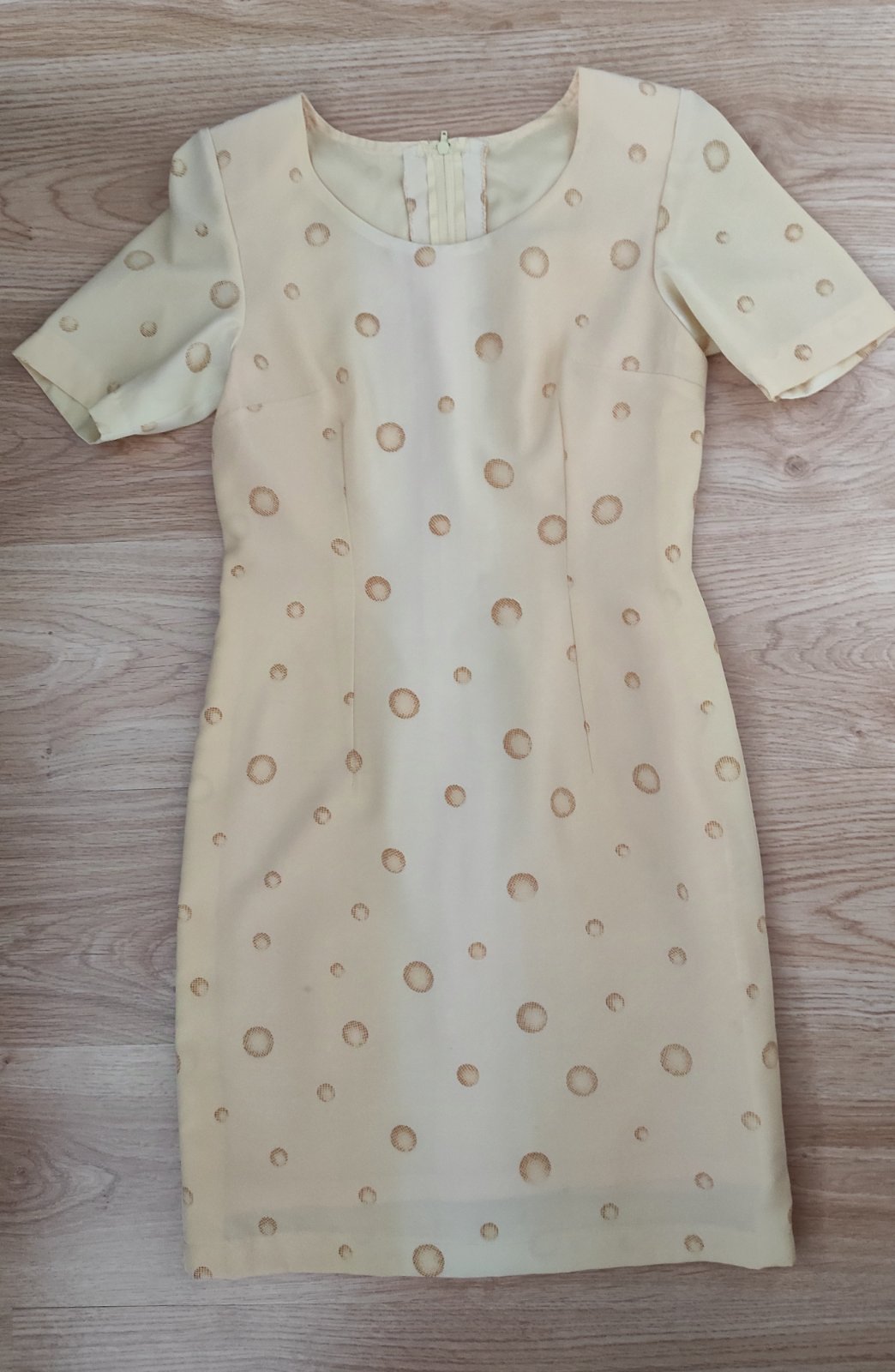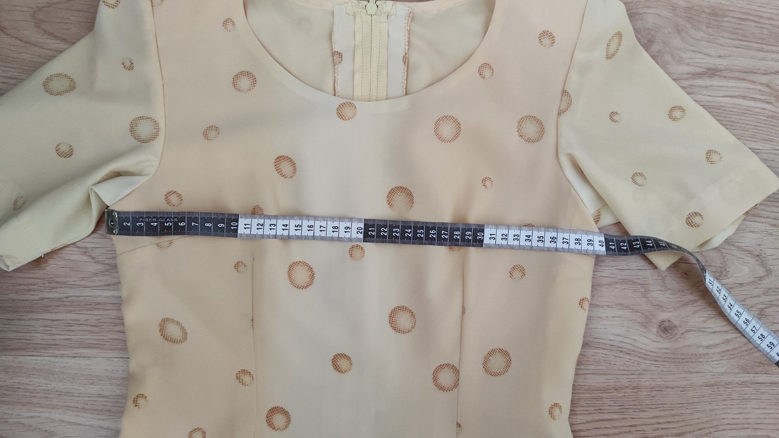 Predám dámske šaty šité na mieru. Nenosené. Veľkosť odhadom S, rozmery sú na fotkách. Po celej dĺžke šiat je všitá podšívka. Vzadu je zapínanie na zips.