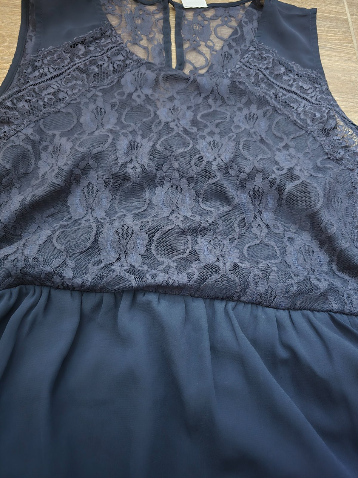 1x použité-kupované tu na MK nepoužité s visačkou,velkost pisana L, celkova dlzka 92 cm, sirka cez prsia 42 cm ... tmavomodre, vpredu aj vzadu cipka (podsite, aby nepresvitali), vyrobene v EU.PC 2...