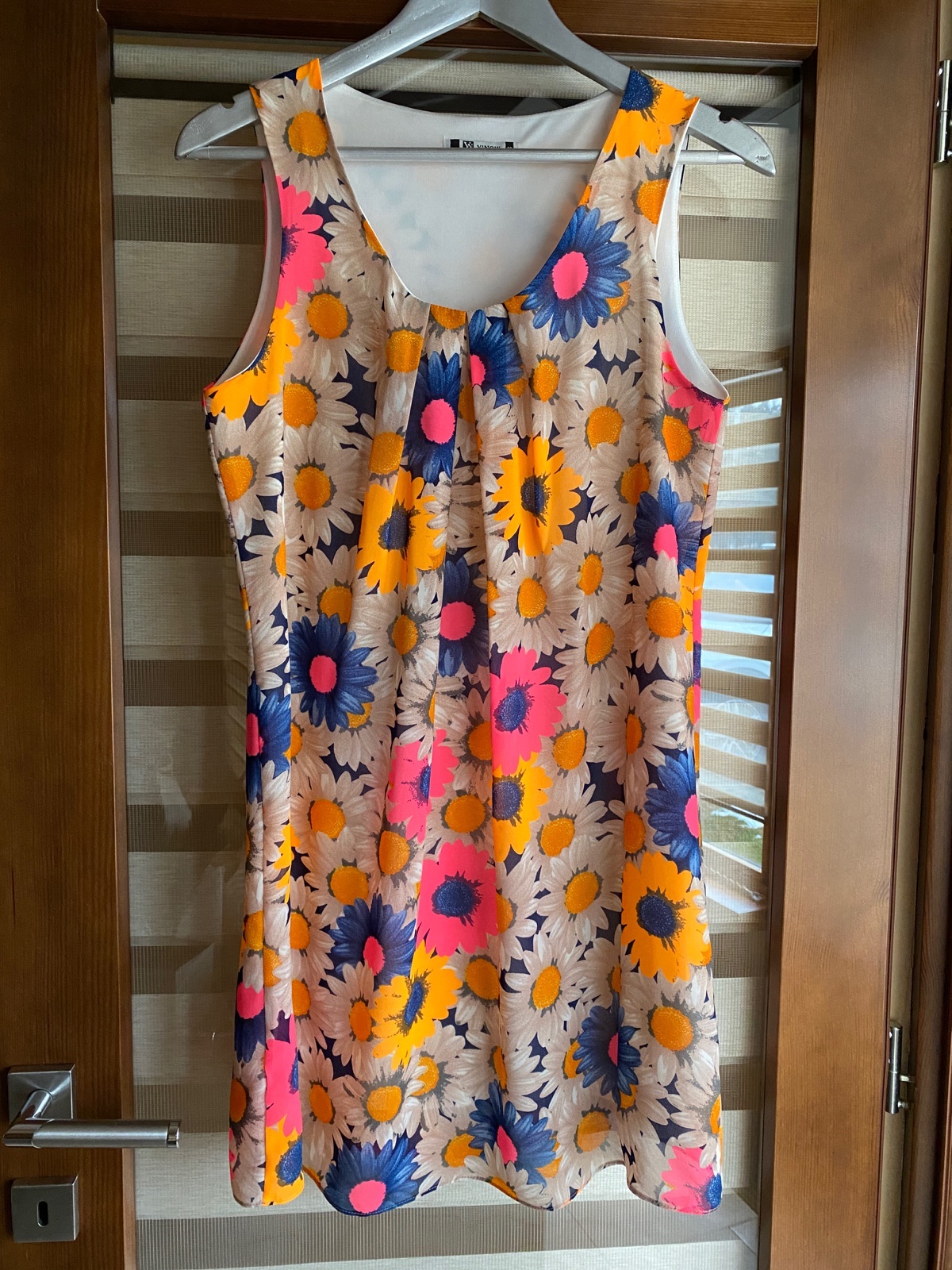 Sú v super stave, boli párkrát oblečené, veľkosť M, dĺžka je 87cm, šírka cez prsia 47cm (obvod 94cm). Materiál nie je elastický, sú ľahké, majú aj podšivku.