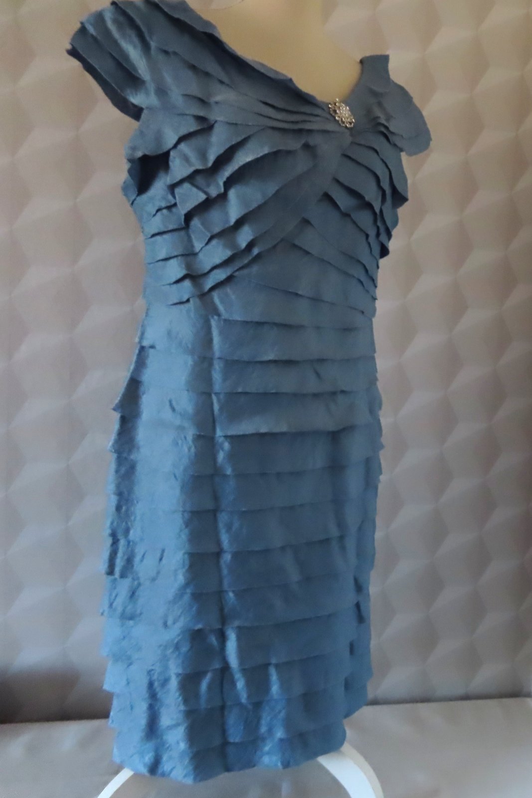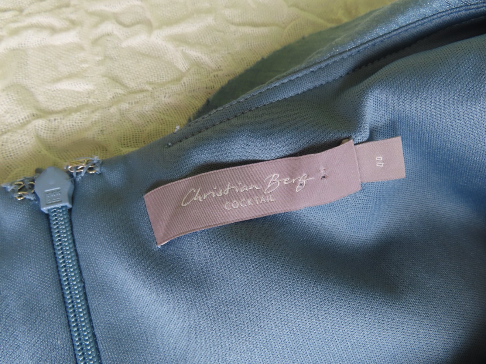 Dámske kokteilové šaty Christian berg, farba svetlá tyrkysová- modrá. Veľkosť XL - rozmery: dlžka 102cm, pod pazuchami 2x55cm - pekne sa prispôsobia postave.
