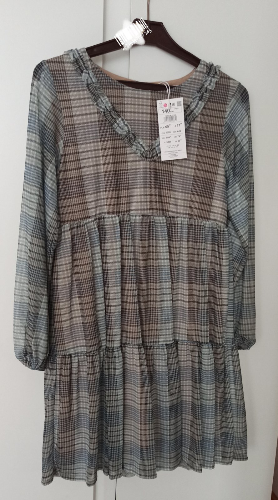 Nové, s visačkou, ľahučký materiál. Celková dľžka 80cm, šírka 34cm, dľžka rukáva od krku 62cm/ od ramena 54cm. Cena + poštovné