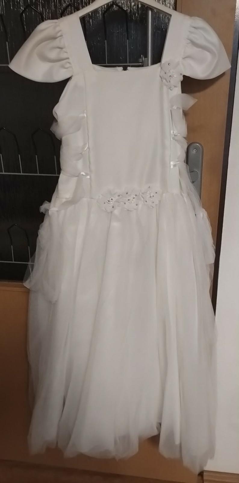 Šaty na 1. sv. prijímanie č. 1 Jednoduché a zároveň krásne šaty na 1. sväté prijímanie alebo pre družičku na svadbu. Šatôčky sú zo saténu vo vrchnej časti, ramená sú zdobené čipkou Suknička je z...