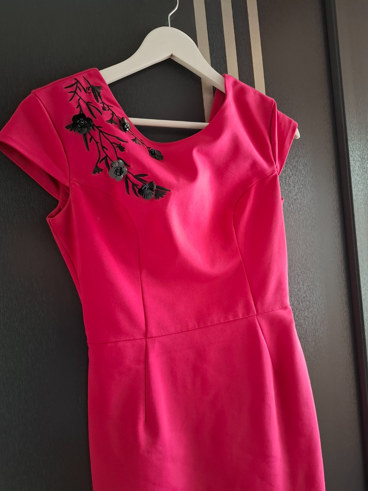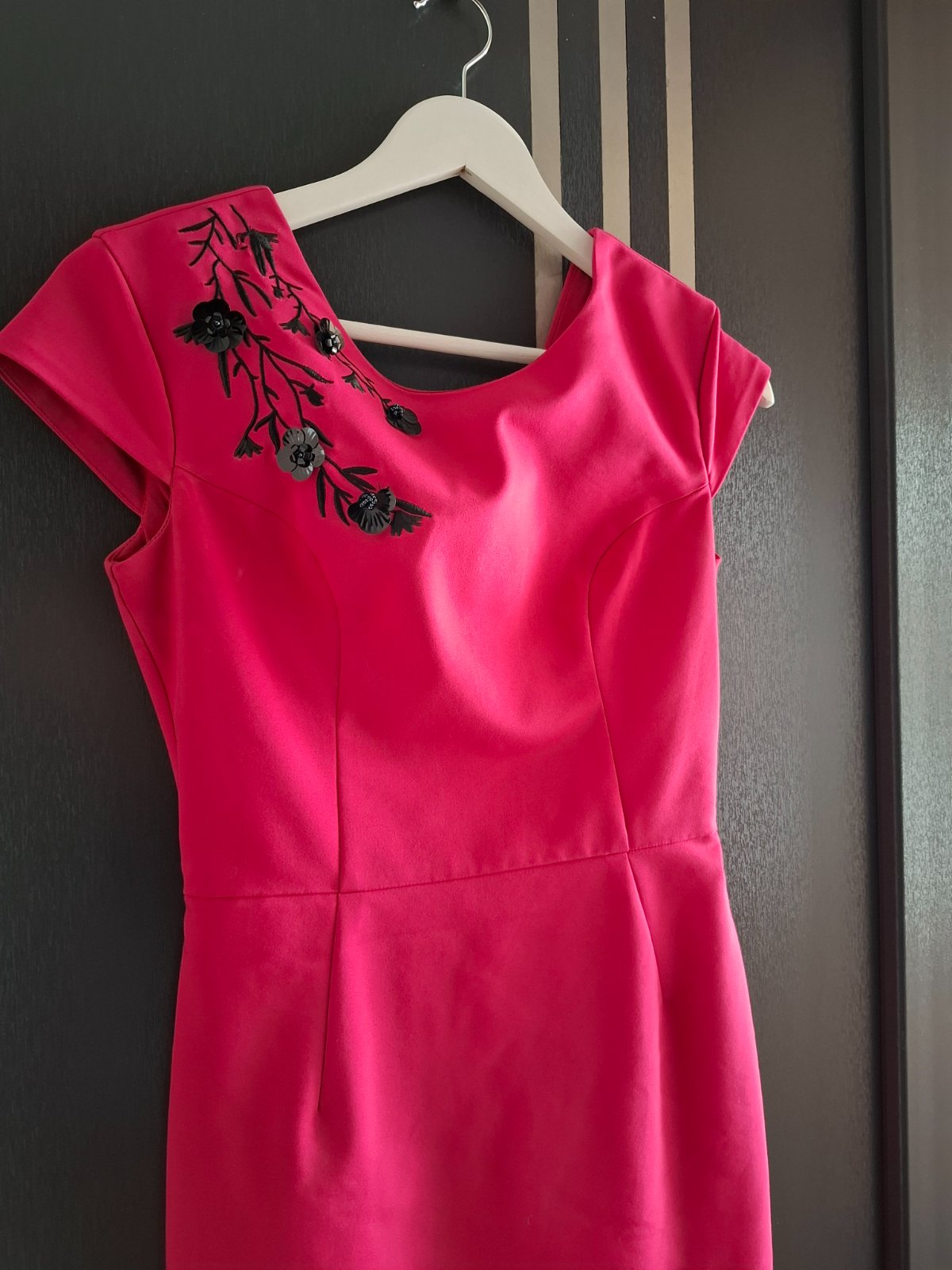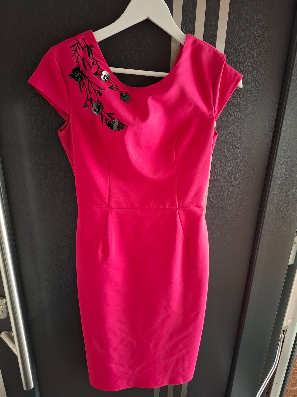 Prekrasne kvalitné saty od MOHITO v top stave! Sedia perfektne, kvalitný elastický ale pevný materiál, oblečené boli 1x. Super riešené vzadu aj vpredu, zapíbanie na zips na chrbte a 3 gombíky. Dlžk...
