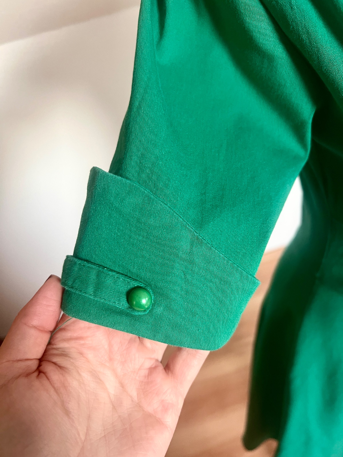 Zelené šaty z príjemného materiálu. Zapínajú sa vzadu na zips, takže sa jednoducho obliekajú. Sú elegantné a výrazné nielen farbou, ale aj strihom. Písaná je veľkosť S, podľa mier sú skôr 38.