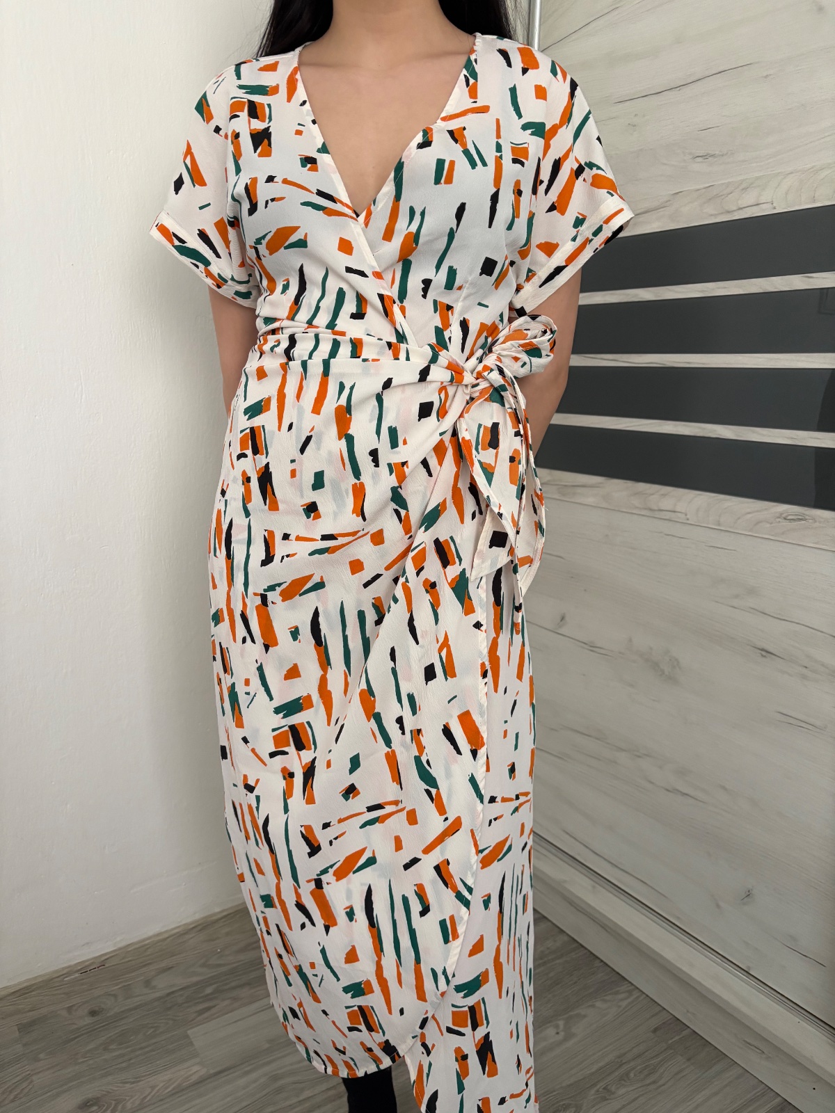 Na boku zips,výstrih v predu sa reguluje šnúrkou, v prednej časti je rozparok. Veľkosť S/M. Širka cez prsia 42cm x2 Dĺžka 142cm