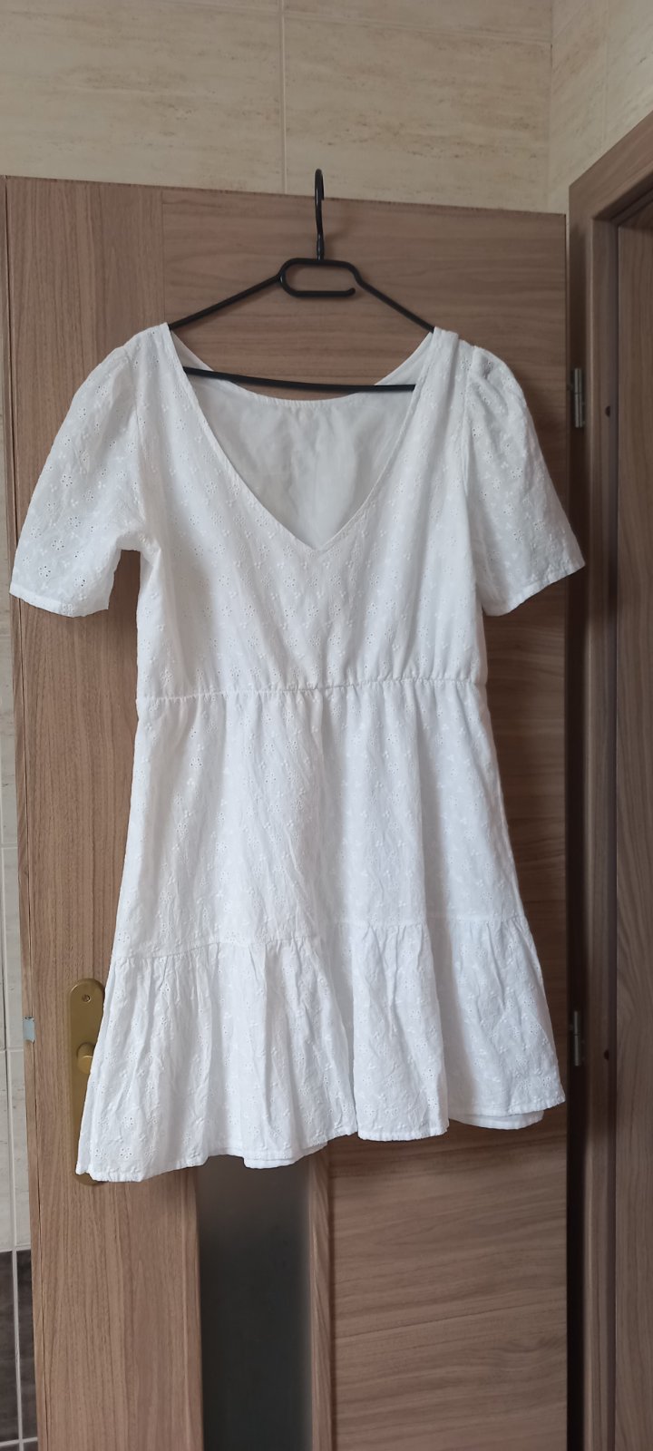Nádherné biele šaty s madeirou. Šaty majú spodničku a 3/4 puff rukávy,dajú sa aj jemne stiahnúť na ramená. Veľkosť uvedená 42 ale ja bežne nosím M a L a sú mi dobré,takže v prípade záujmu premeriam...