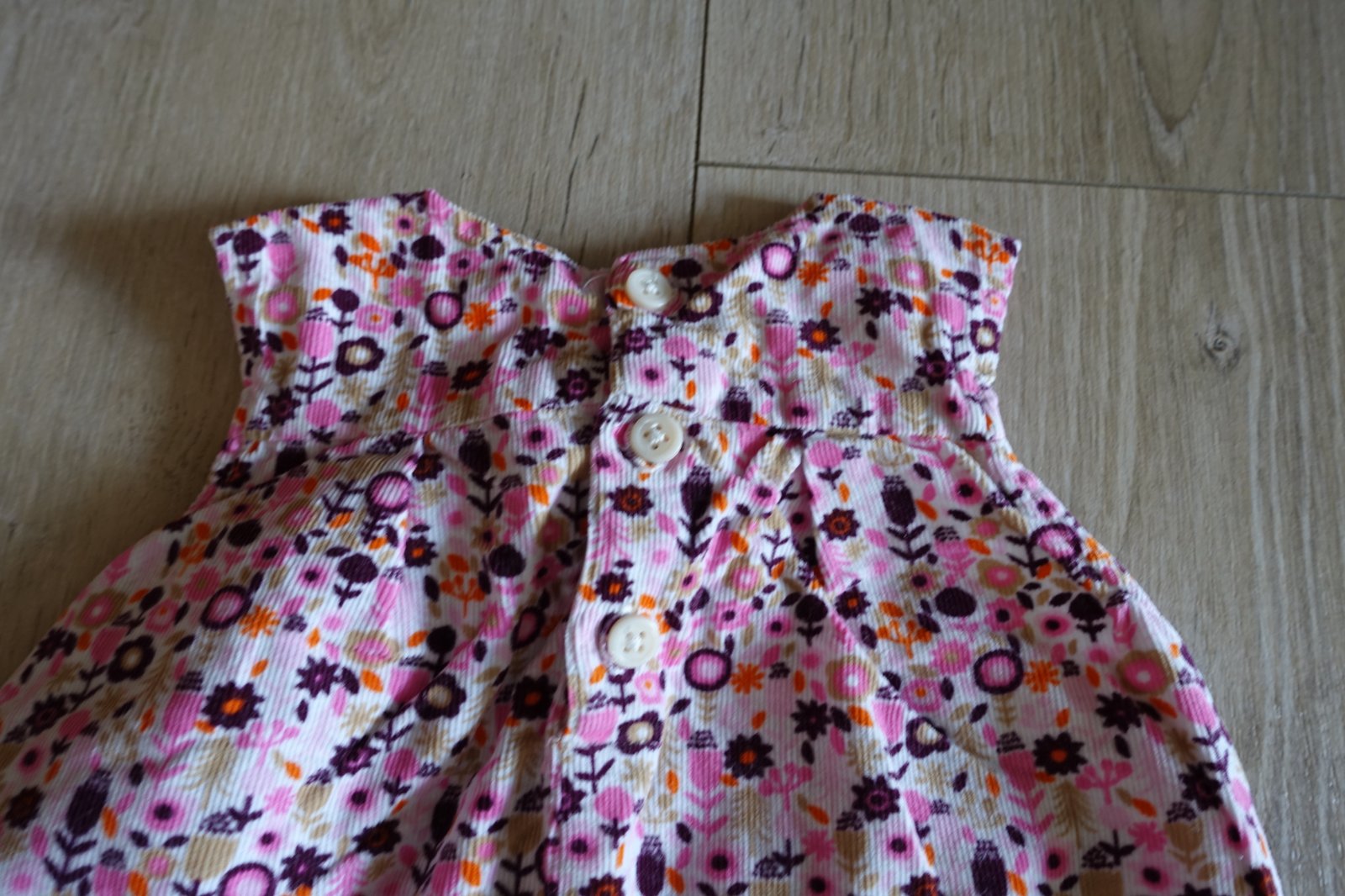 Predám prekrásne vzdušné rebrované bavlnené šatočky vo veľkosti 74. Sú 100% bavlnené. Mali sme ich iba pár krát na striedačku aj s inými, ale sú v peknom nosenom stave, až top stav. Nemajú žiadne fľaky, diery, ani žmolky. Sú milené. V predu majú krásnu mašličku. Vzadu sa zapínajú na 3 gombíky. Dĺžka od pliecka po spodok je 40 cm a šírka je 29 cm (meraná popod pazuškami). (G)